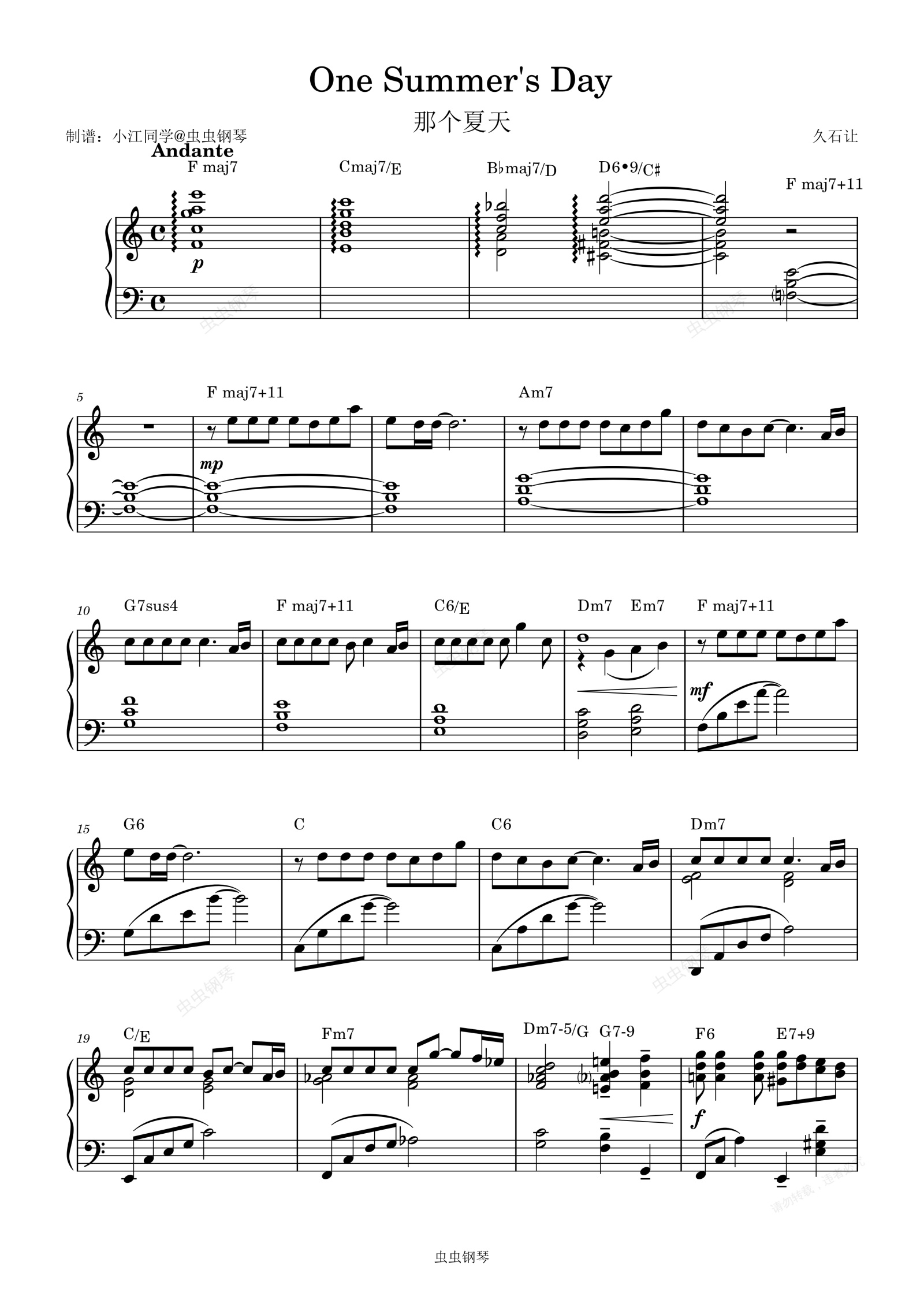 钢琴谱:あの夏へ One Summer's Day 那个夏天