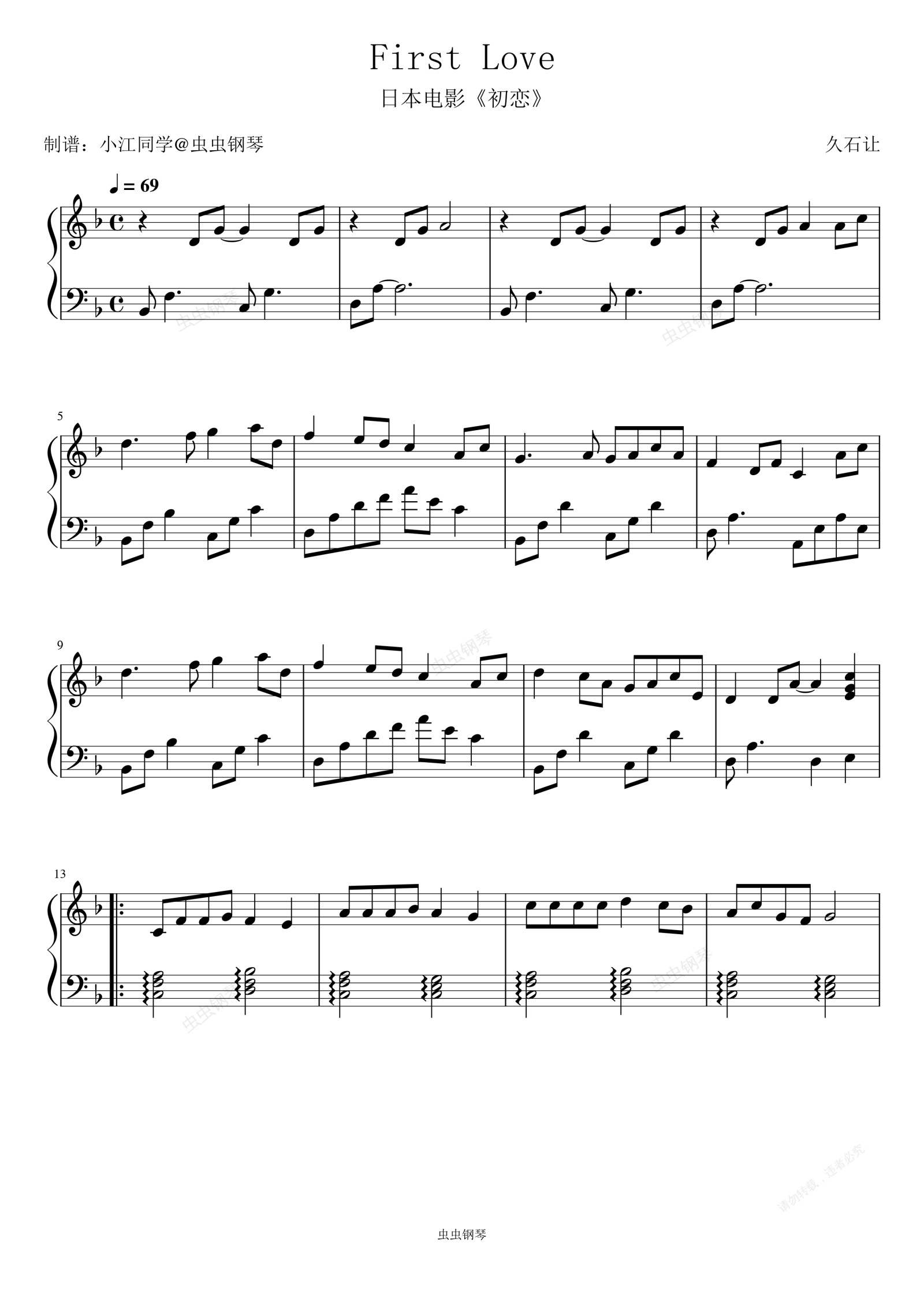 钢琴谱:First Love(初恋)