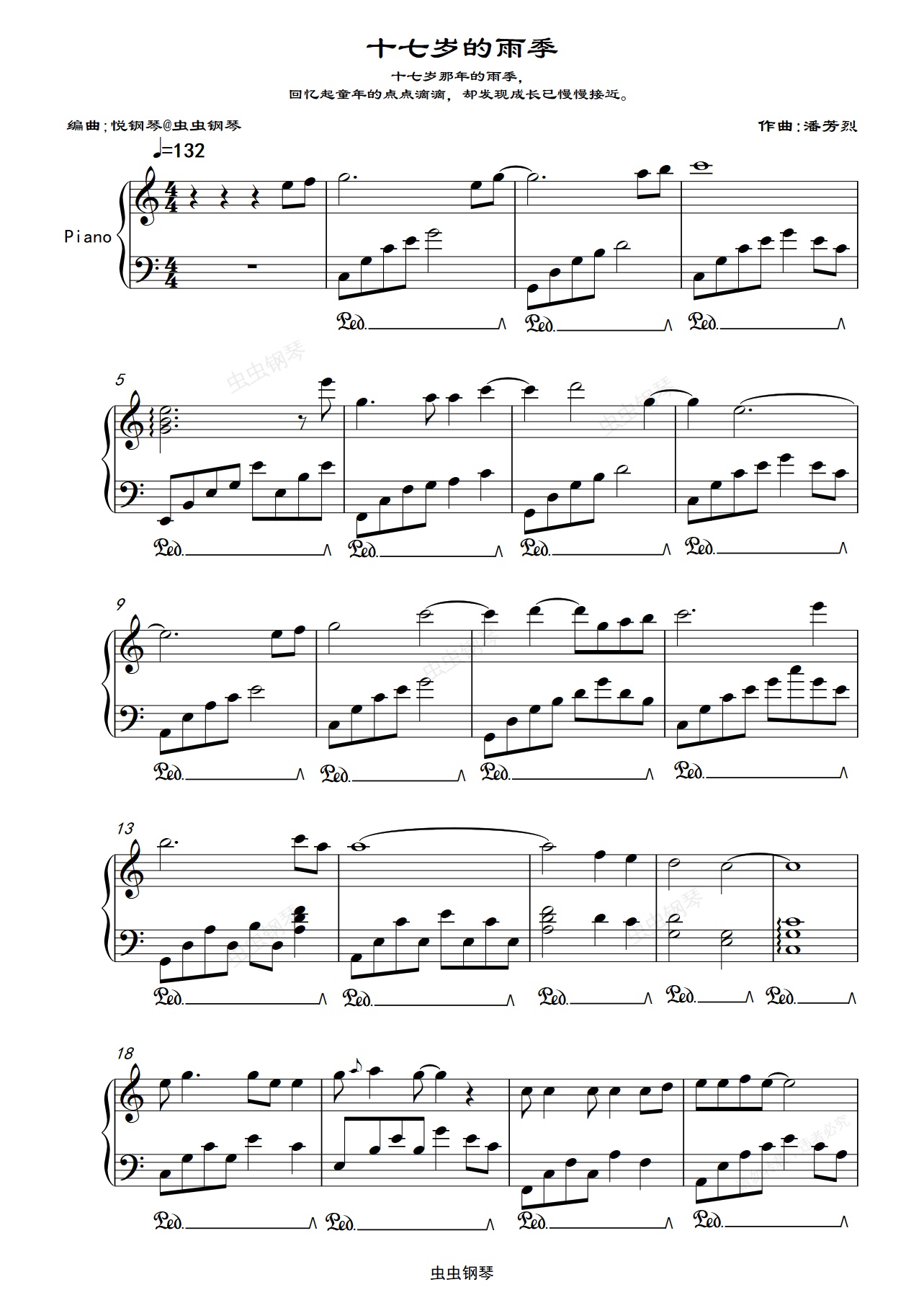 钢琴谱:十七岁的雨季 C调版(毕业季歌曲)林志颖
