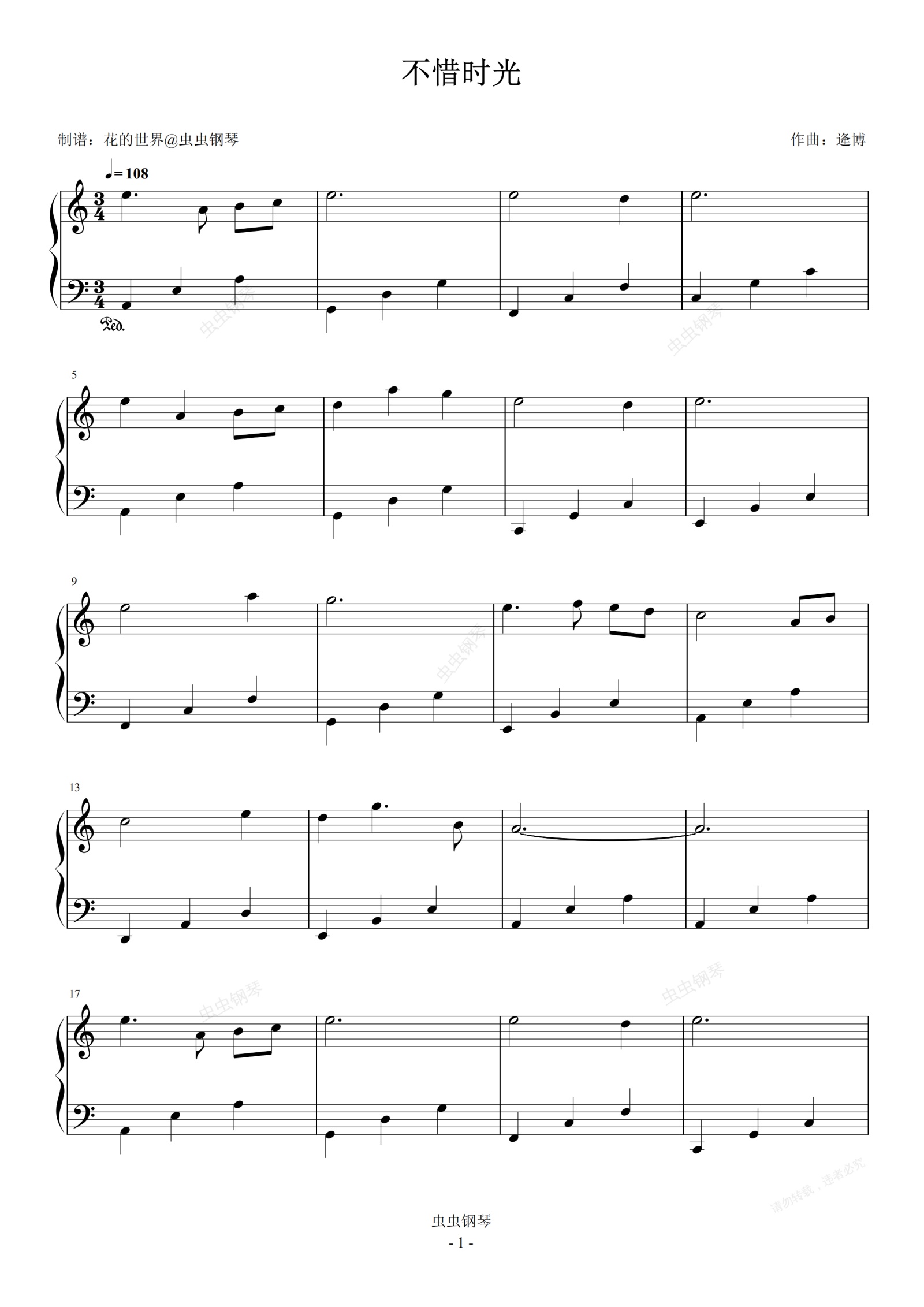 钢琴谱:不惜时光 C调简易版本 张靓颖  梦华录
