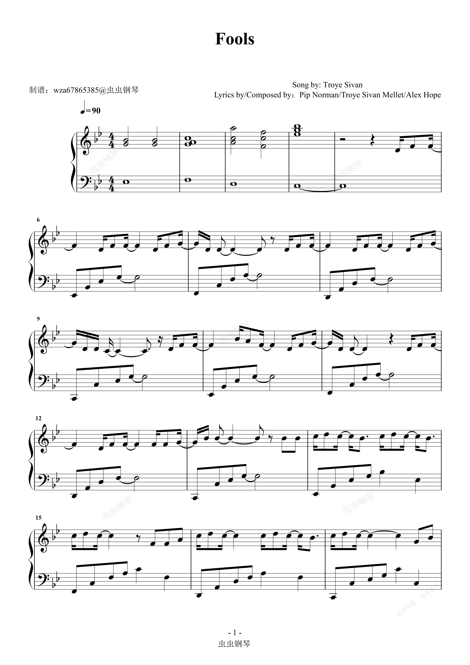 钢琴谱:Fools-Troye Sivan