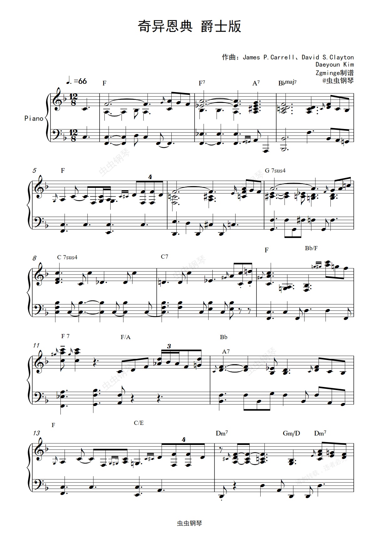 钢琴谱:奇异恩典 爵士版