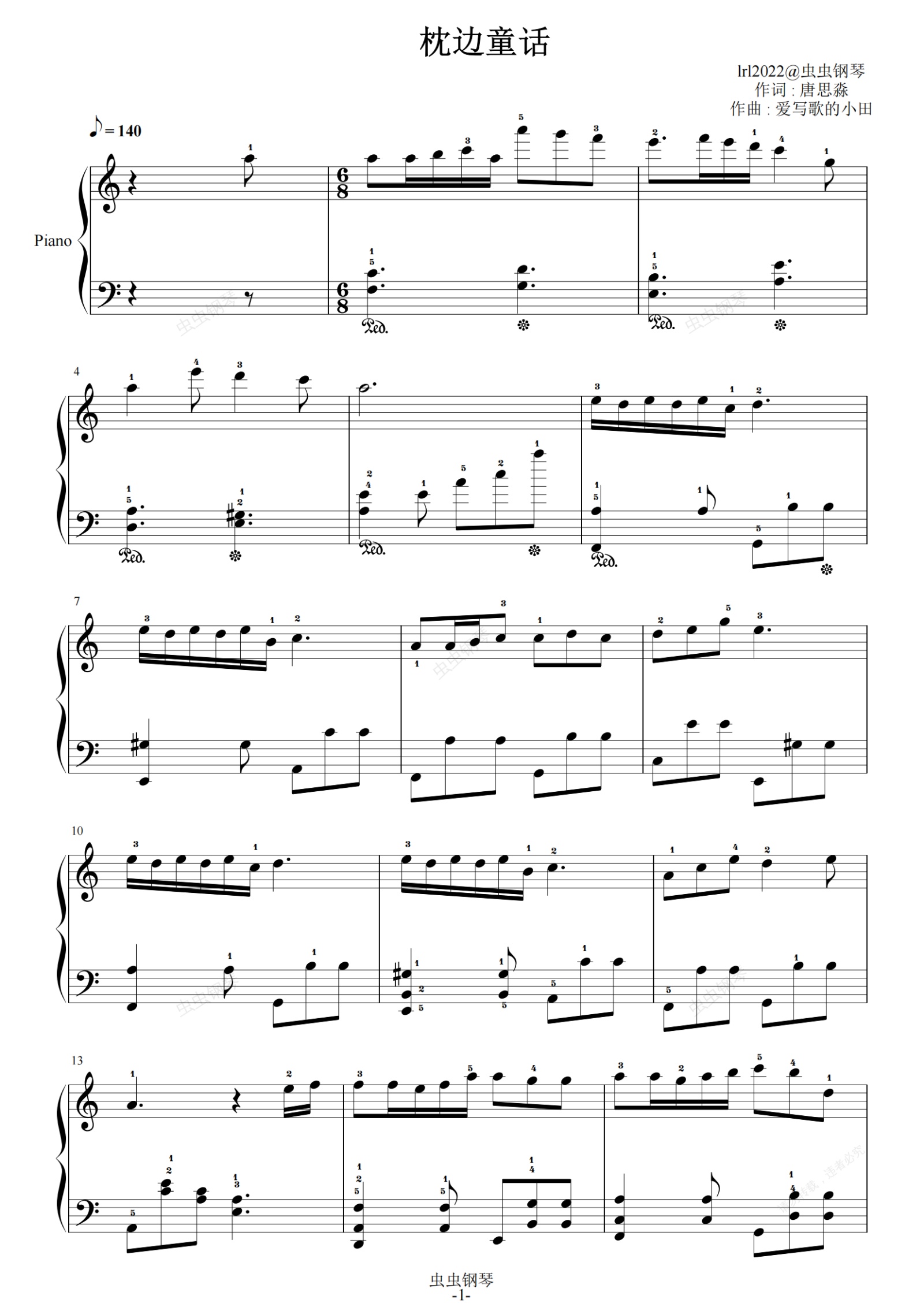 钢琴谱:《枕边童话》-C调指法-初学者简易版