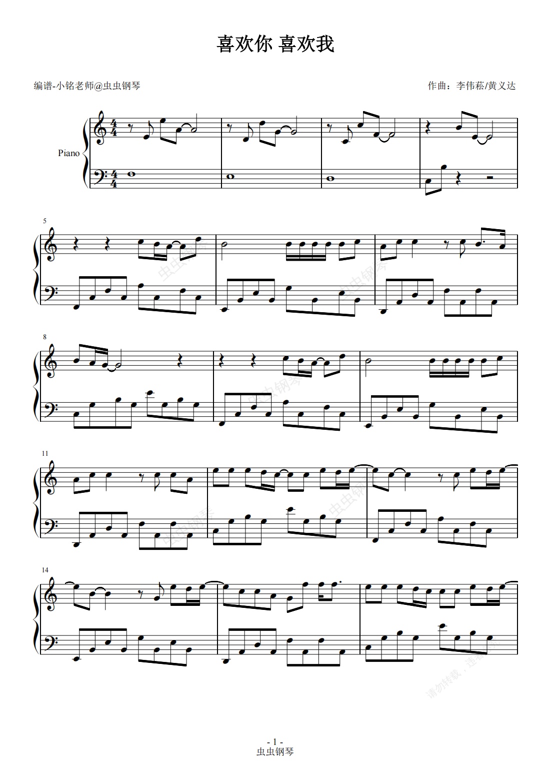 钢琴谱:喜欢你 喜欢我 【简易 动听】