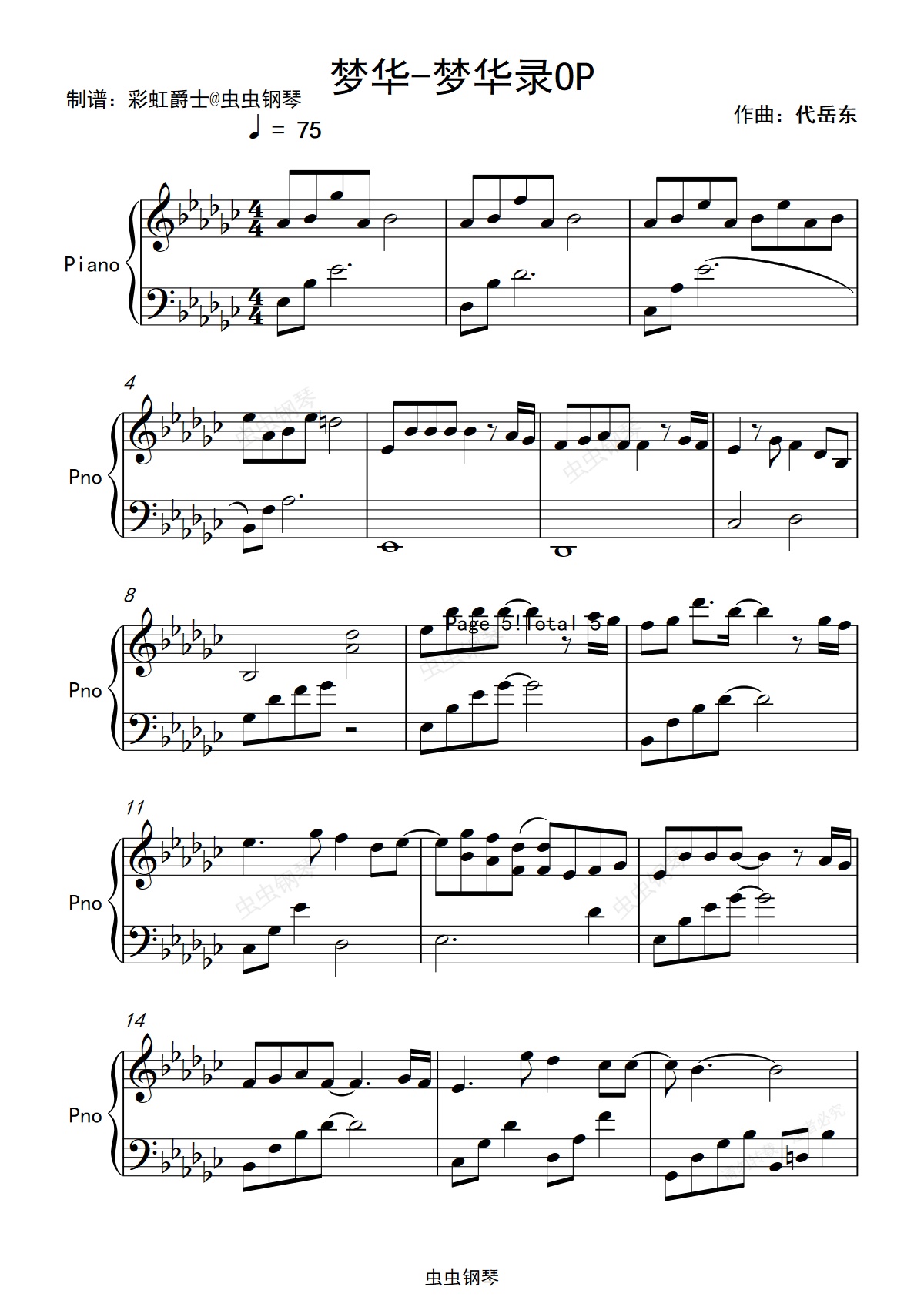 钢琴谱:梦华-梦华录OP  钢琴  完整版