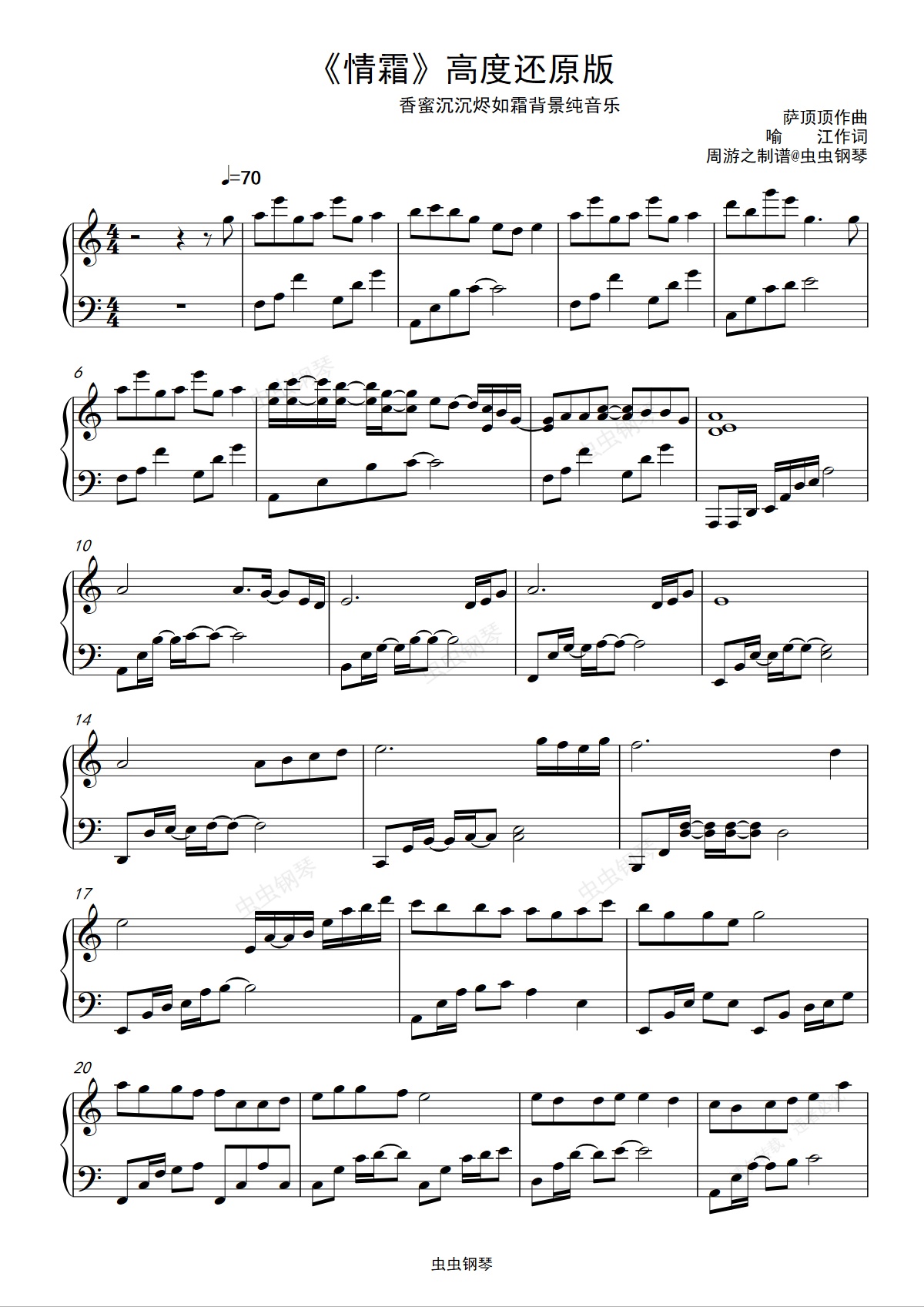 钢琴谱:《情霜》--香蜜沉沉烬如霜高度还原版
