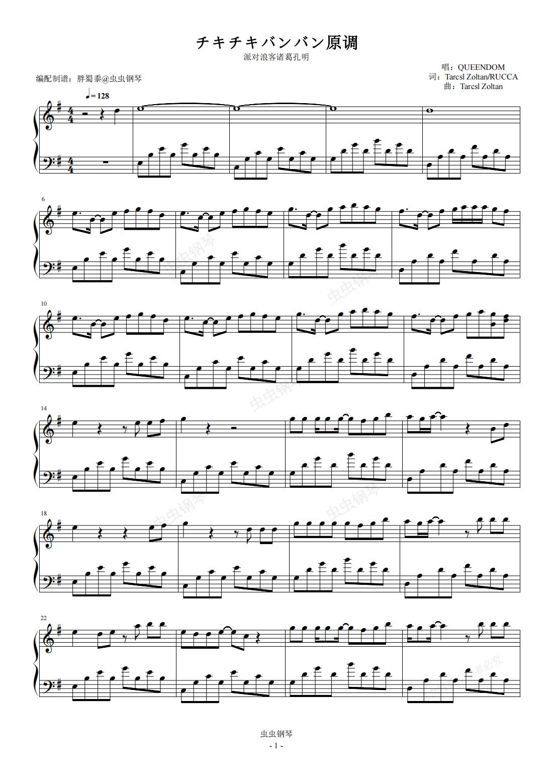 钢琴谱:チキチキバンバン原调易弹完整版-派对浪客诸葛孔明