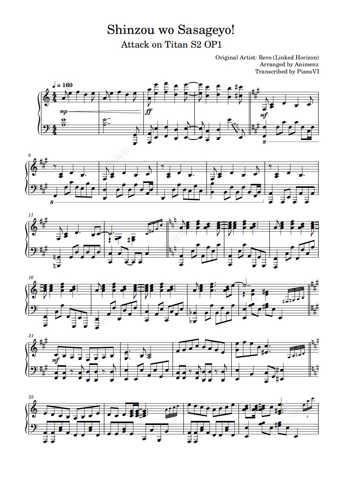 钢琴谱:[Animenzzz] 心臓を捧げよ