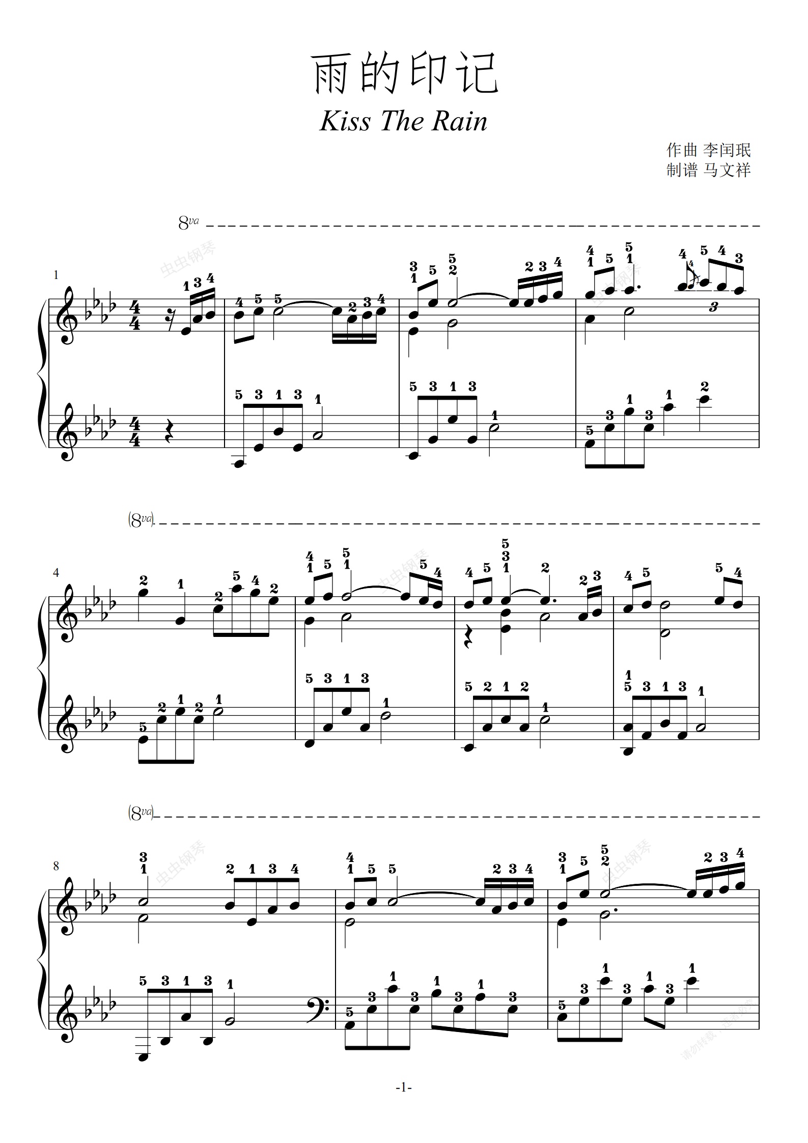 钢琴谱:Kiss The Rain/雨的印记-指法版