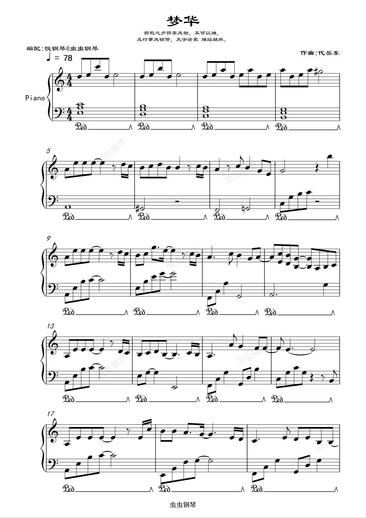钢琴谱:梦华 (电视剧梦华录 片头曲)C调版 刘宇宁