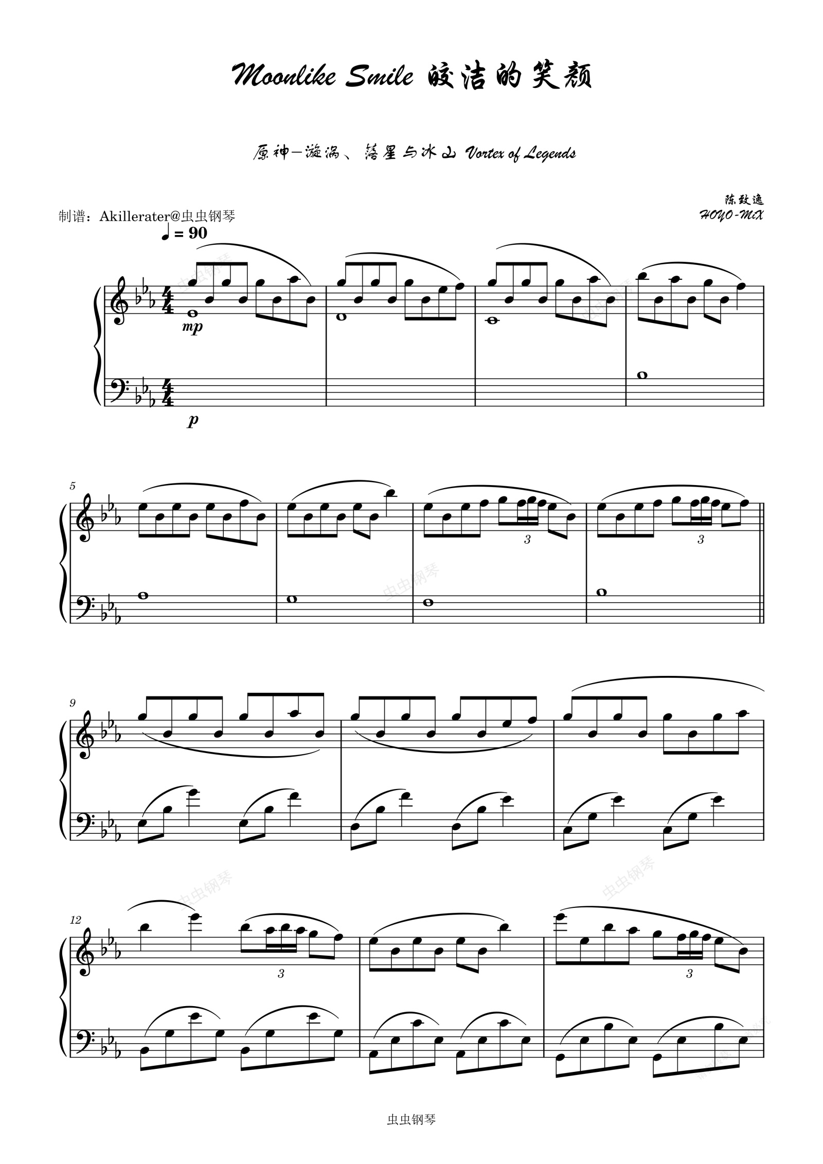钢琴谱:Moonlike Smile 皎洁的笑颜《原神-漩涡、落星与冰山 Vortex of Legends》