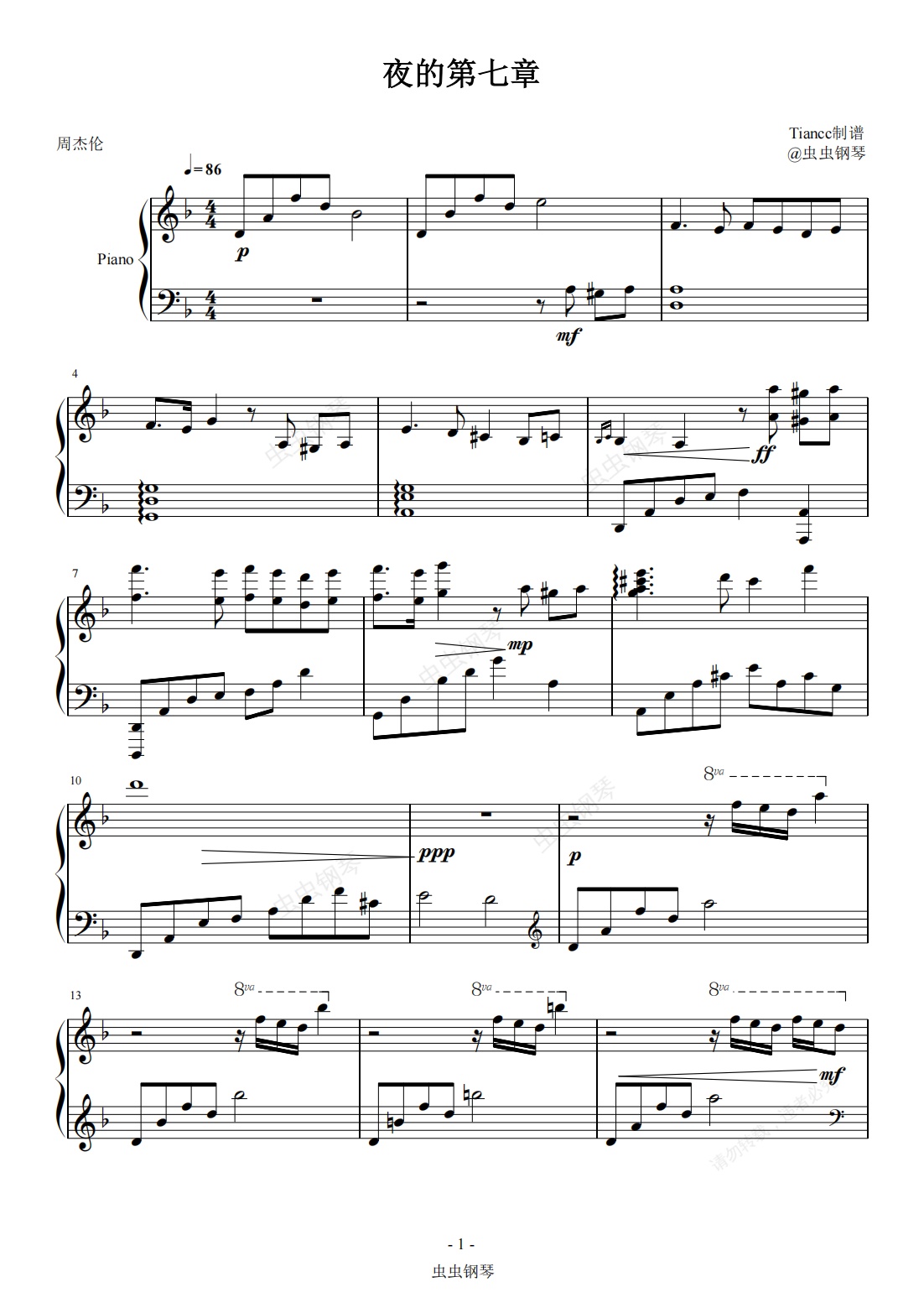 钢琴谱:《夜的第七章》周杰伦,让我来吧~