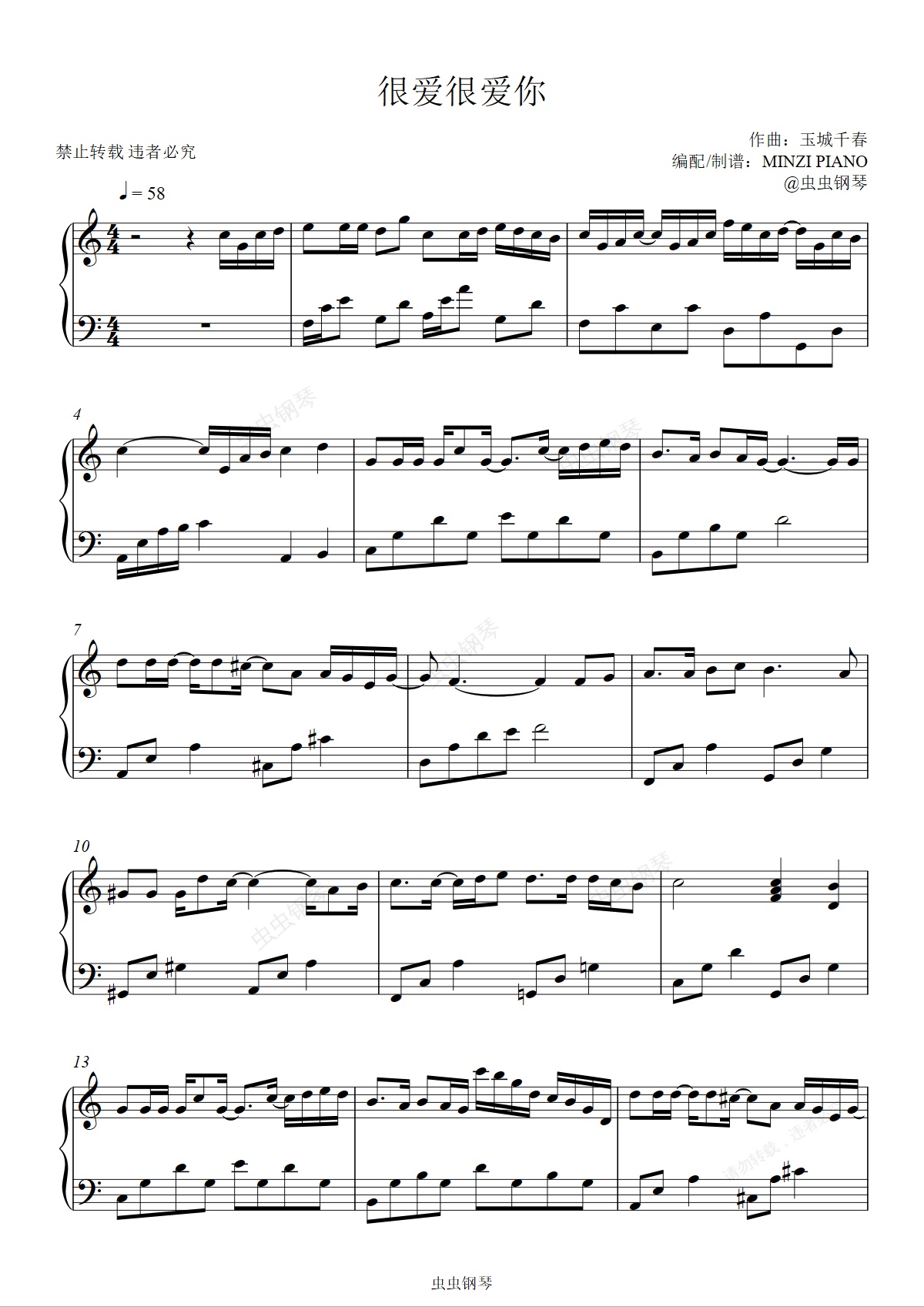 钢琴谱:刘若英《很爱很爱你》好听易弹