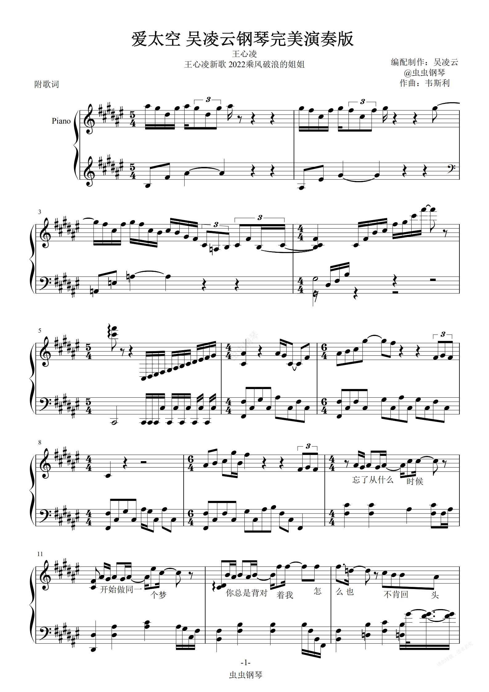 钢琴谱:爱太空 王心凌新歌 吴凌云钢琴完美演奏版 附歌词 2022乘风破浪的姐姐 超好听