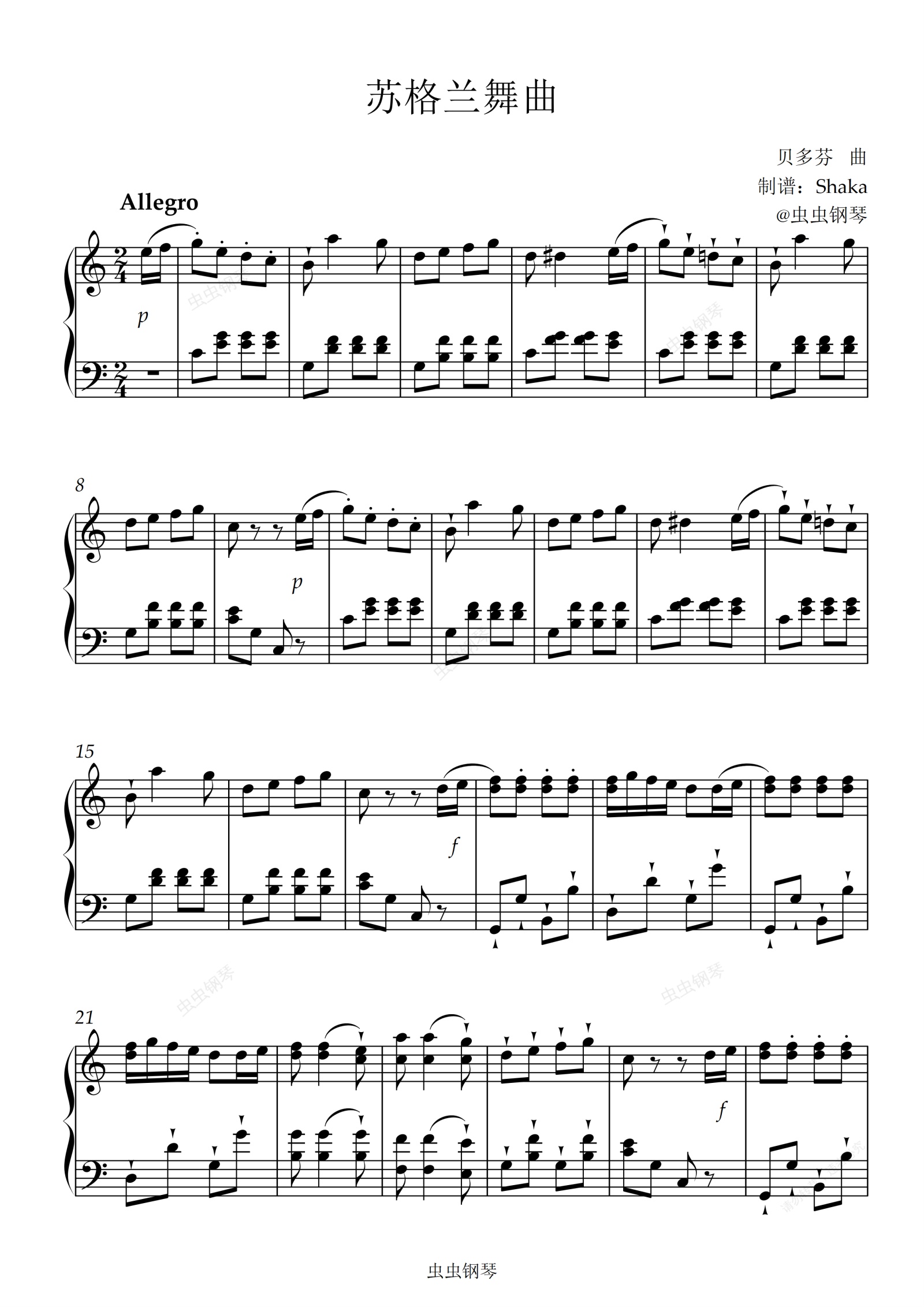 钢琴谱:苏格兰舞曲C调版 贝多芬 上海音乐学院2级考级曲目