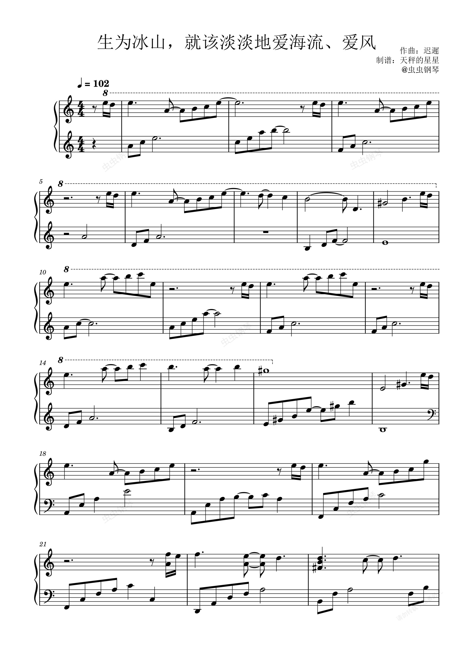钢琴谱:生为冰山,就该淡淡地爱海流、爱风