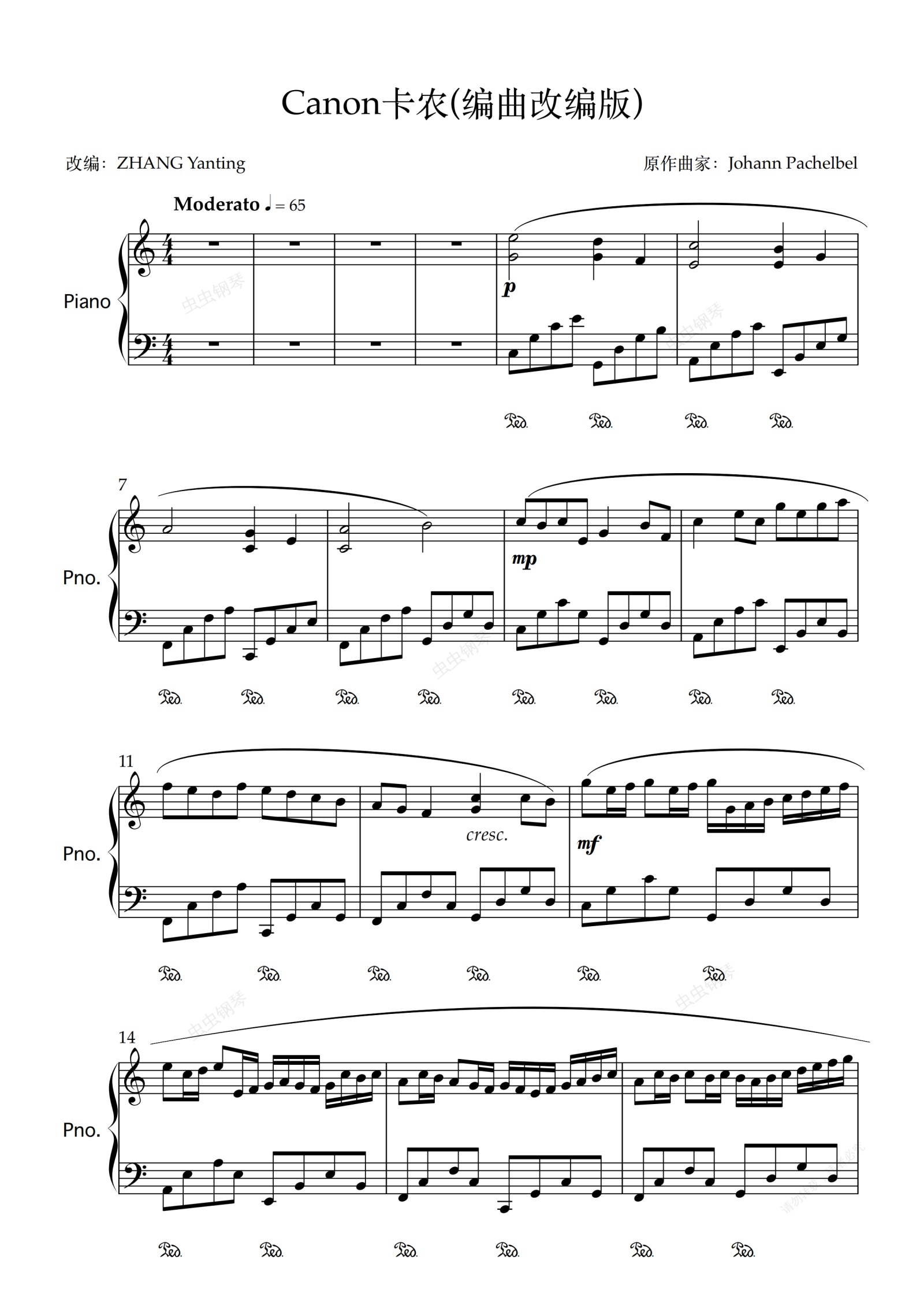 钢琴谱:Canon卡农(编曲改编版,音频含编曲)