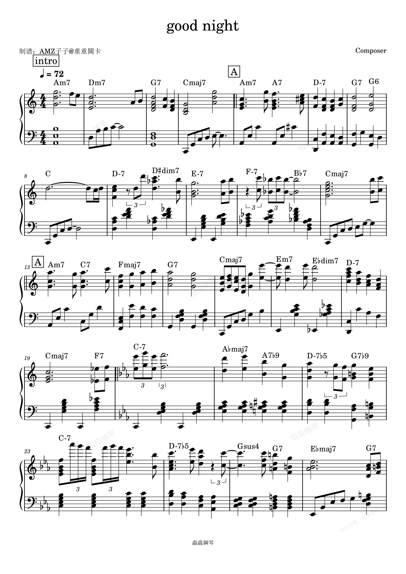 钢琴谱:音乐人自创lofi piano钢琴独奏演奏曲目good night附编曲和弦