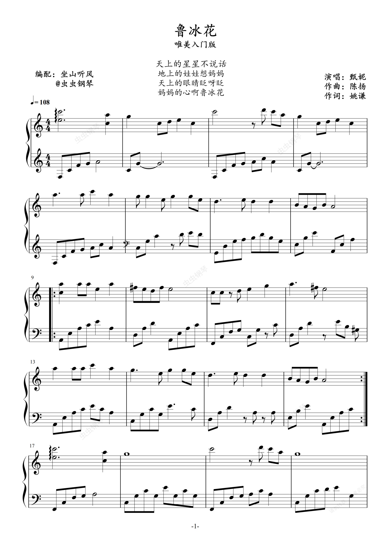 钢琴谱:鲁冰花——唯美入门版
