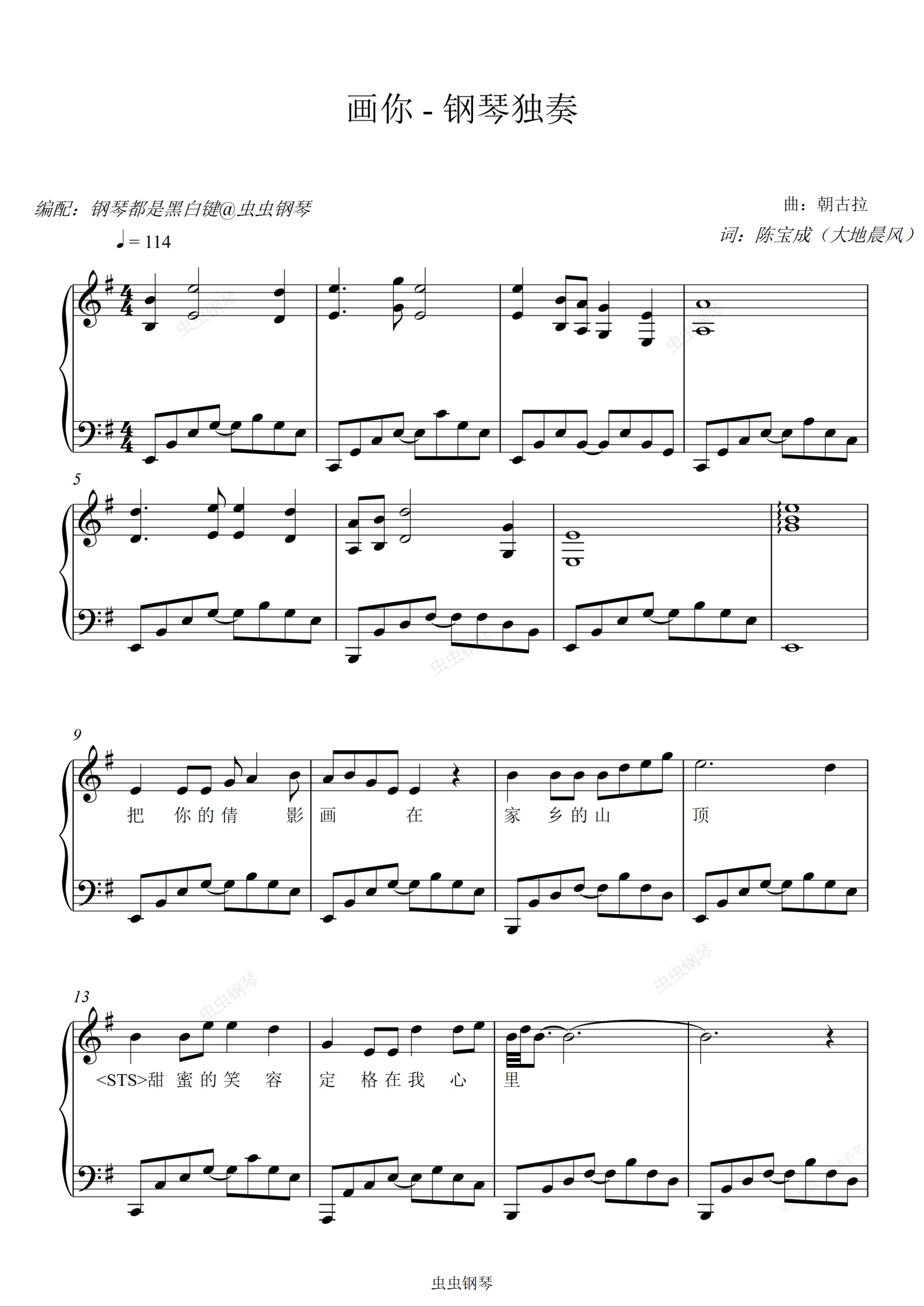 钢琴谱:画你 - 科尔沁夫【带歌词 钢琴独奏】
