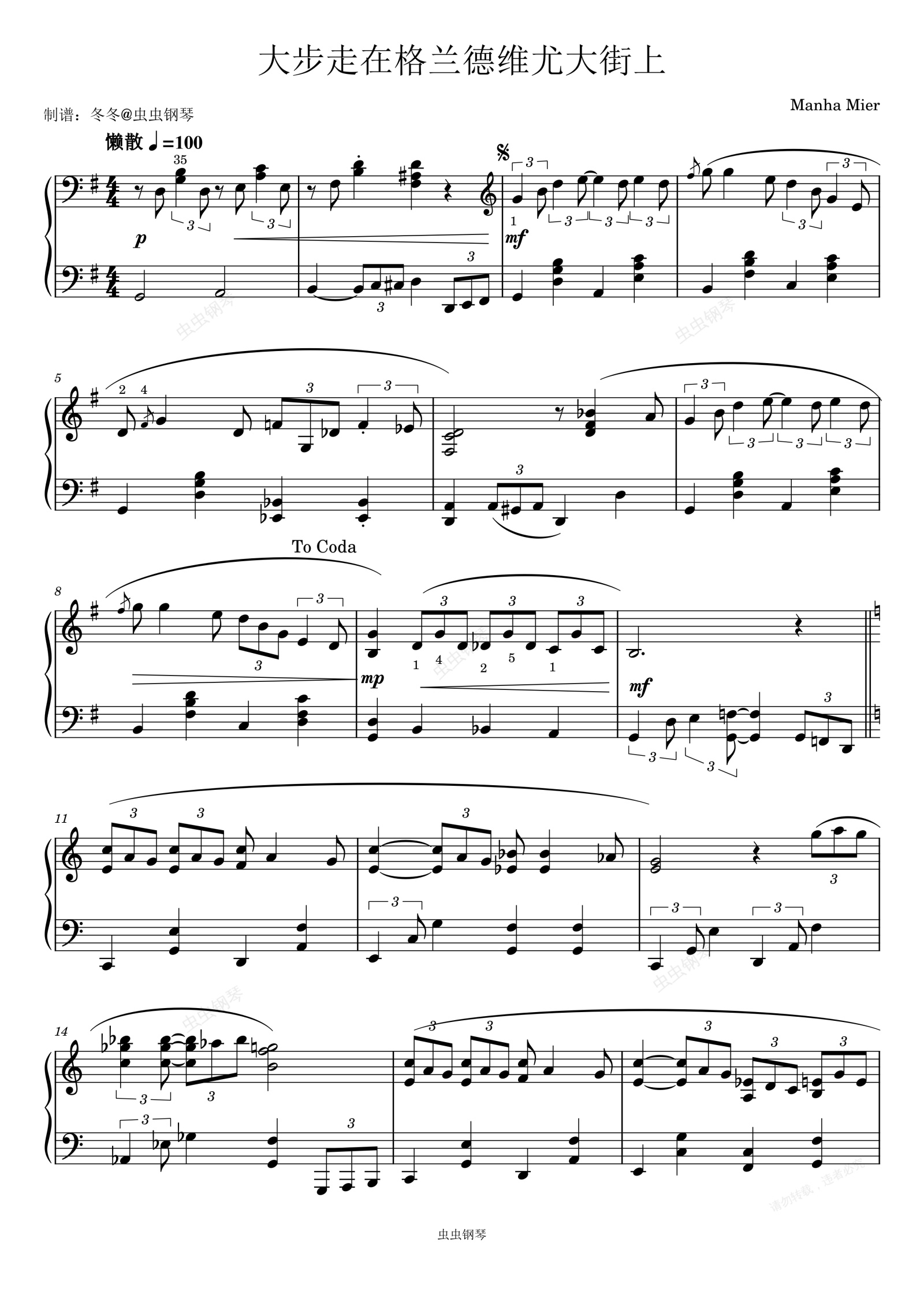 钢琴谱:大步走在格兰德维尤大街上