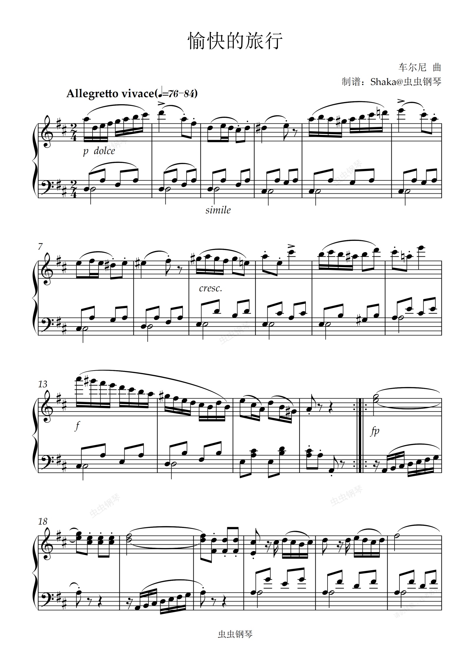 钢琴谱:愉快的旅行 车尔尼  ZYY 考级曲目