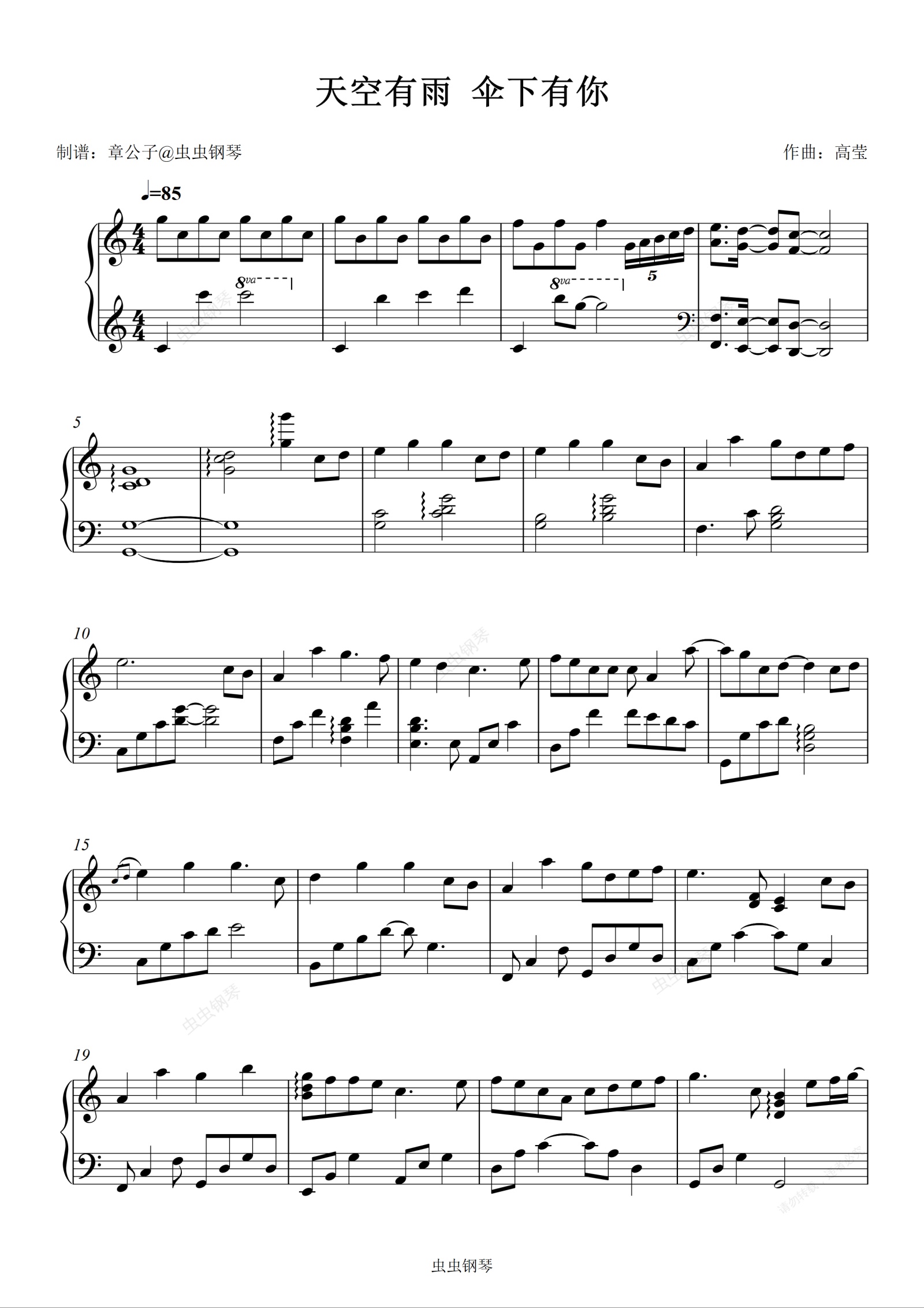 钢琴谱:《天空有雨 伞下有你》- 张杰 独奏谱C调 #虫钢我要上开屏