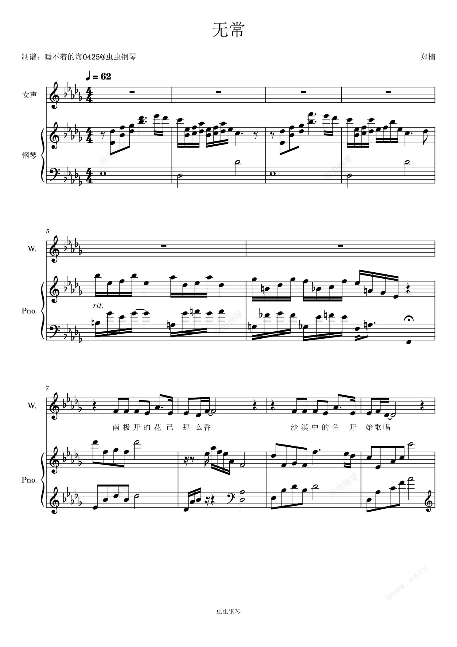 钢琴谱:无常-田馥甄