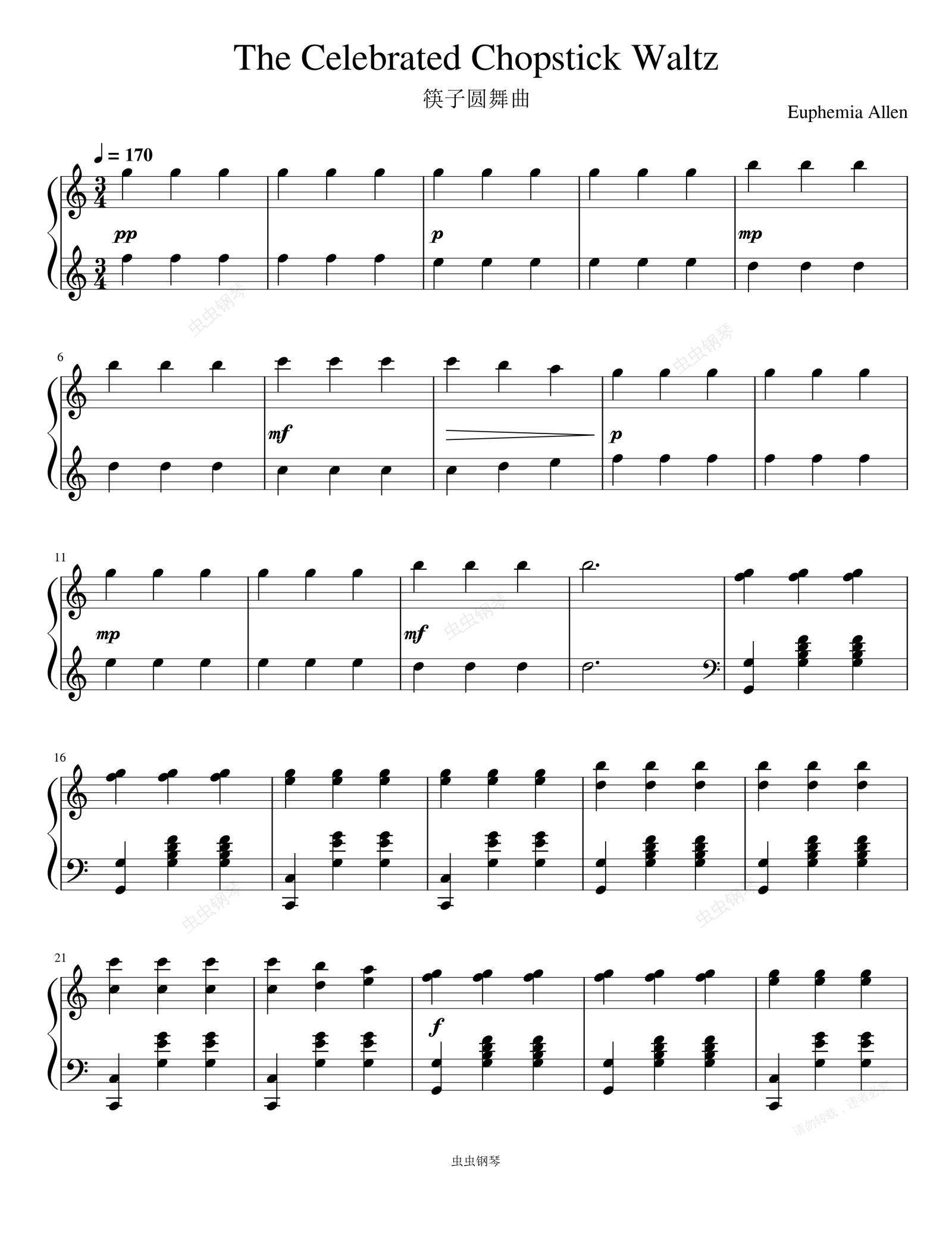 钢琴谱:筷子圆舞曲 Chopstick Waltz