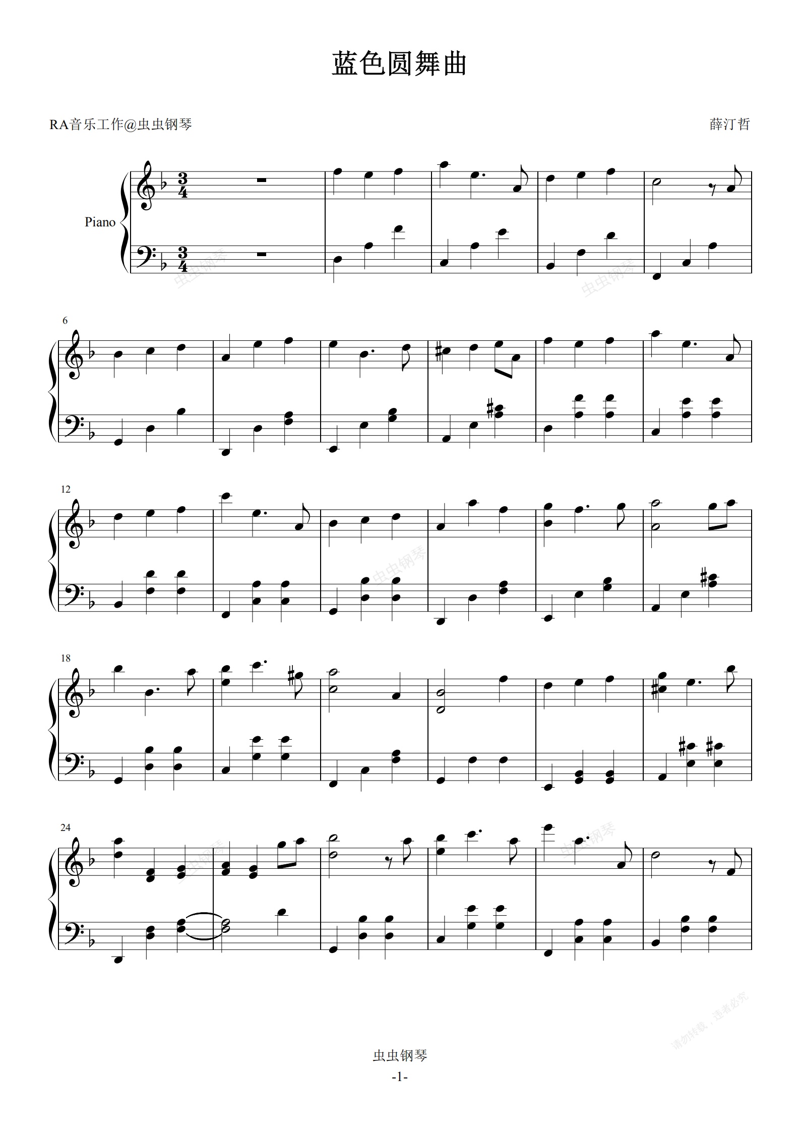 钢琴谱:蓝色圆舞曲-薛汀哲