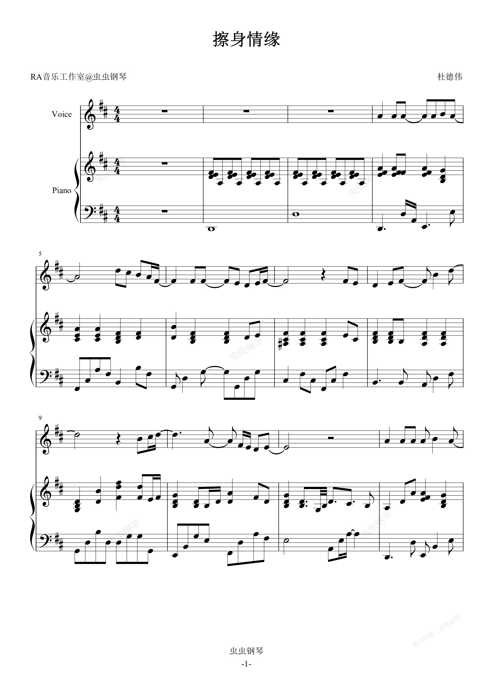 钢琴谱:擦身情缘-杜德伟-钢琴伴奏谱