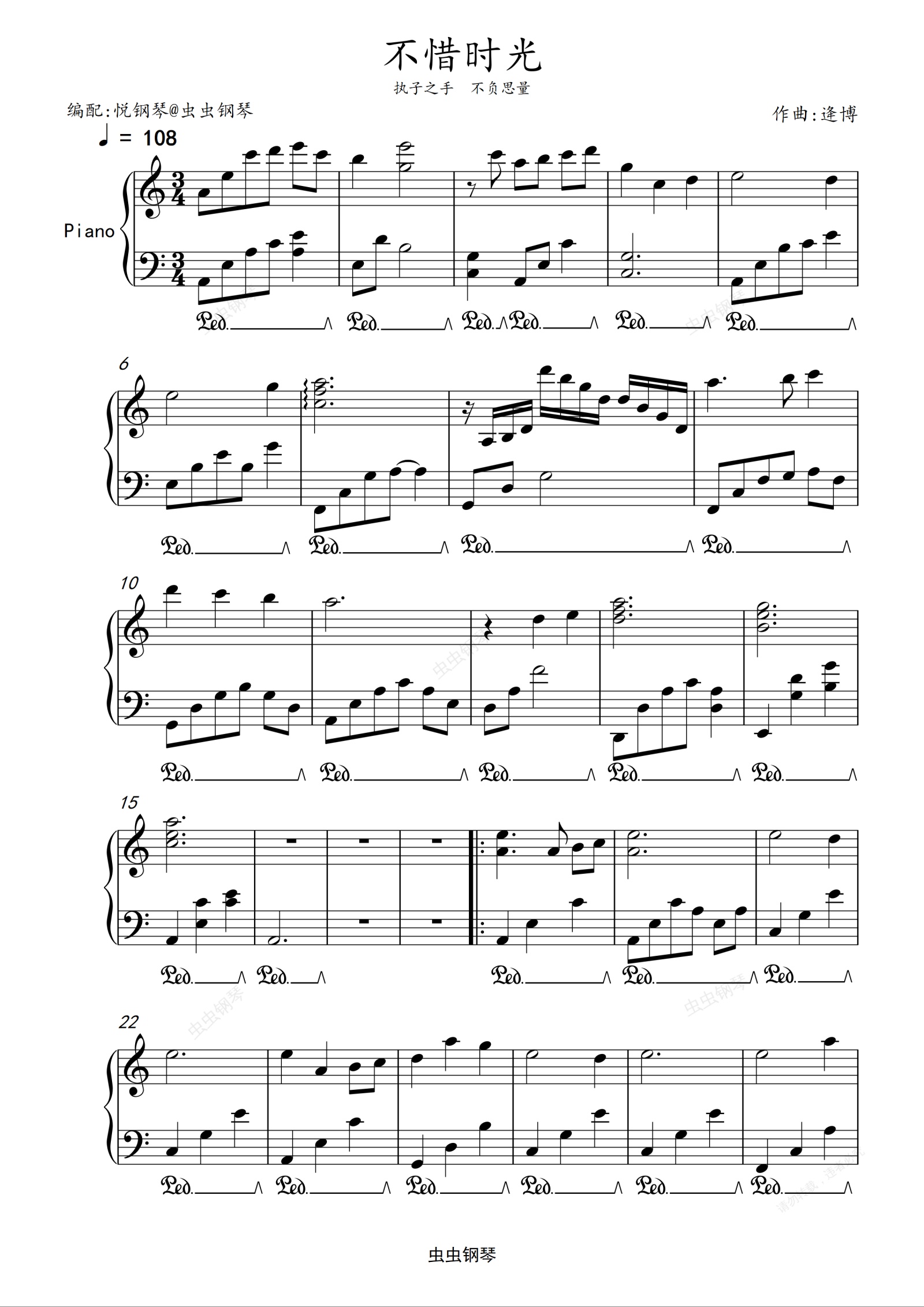 钢琴谱:不惜时光 C调抒情版 (《梦华录》电视剧主题曲|片尾曲) - 张靓颖