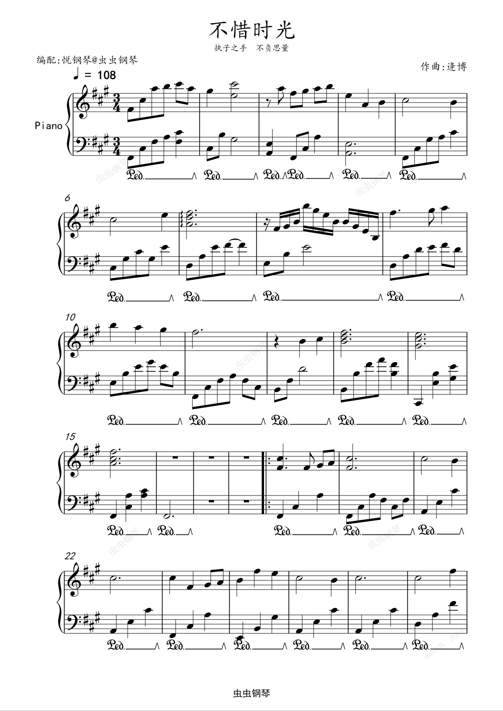 钢琴谱:不惜时光  原调抒情版(《梦华录》电视剧主题曲|片尾曲) - 张靓颖