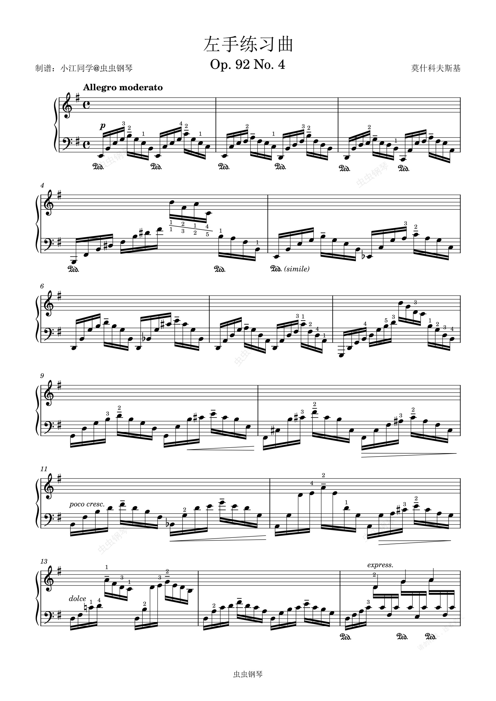 钢琴谱:左手练习曲 Op. 92 No. 4