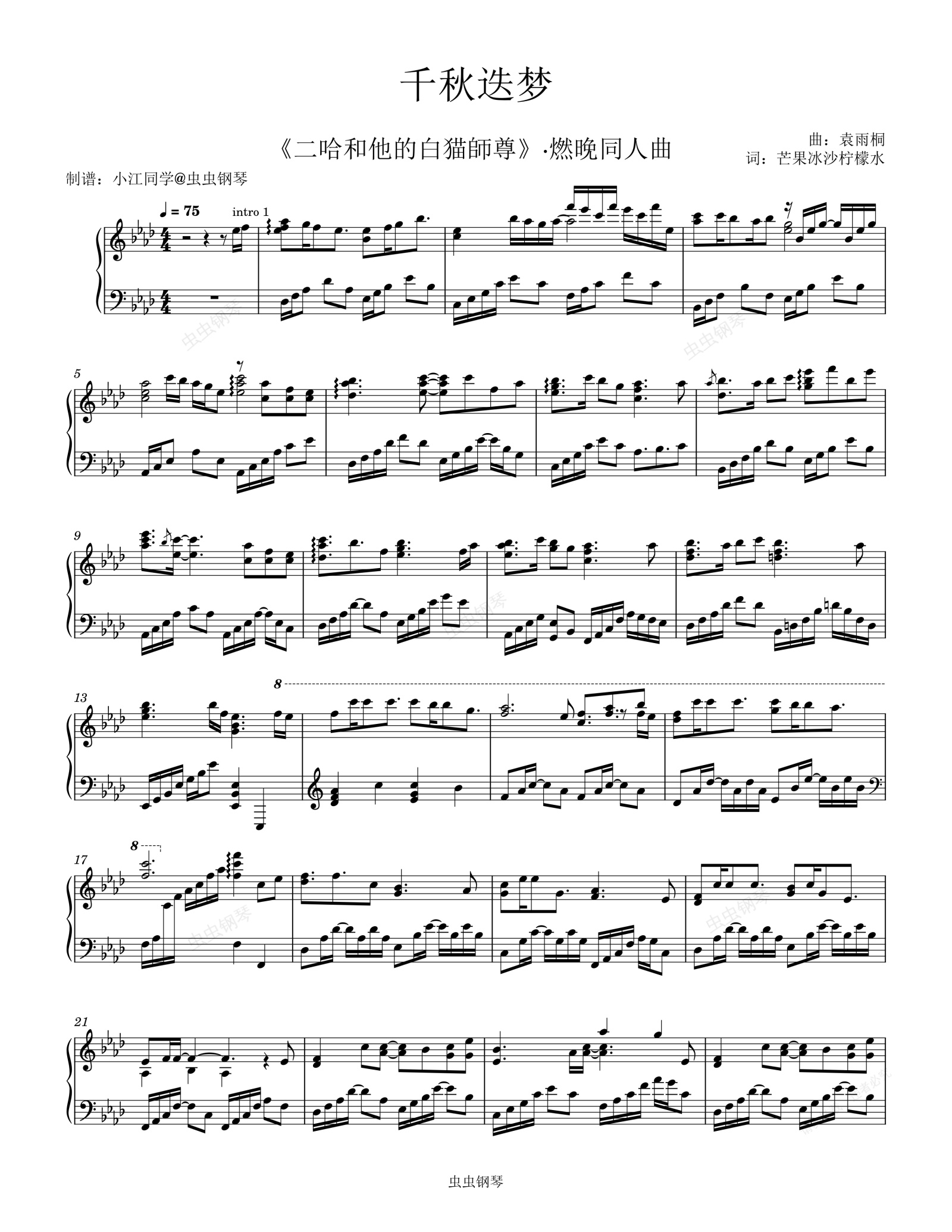 钢琴谱:千秋迭梦《二哈和他的白猫師尊》·燃晚同人曲