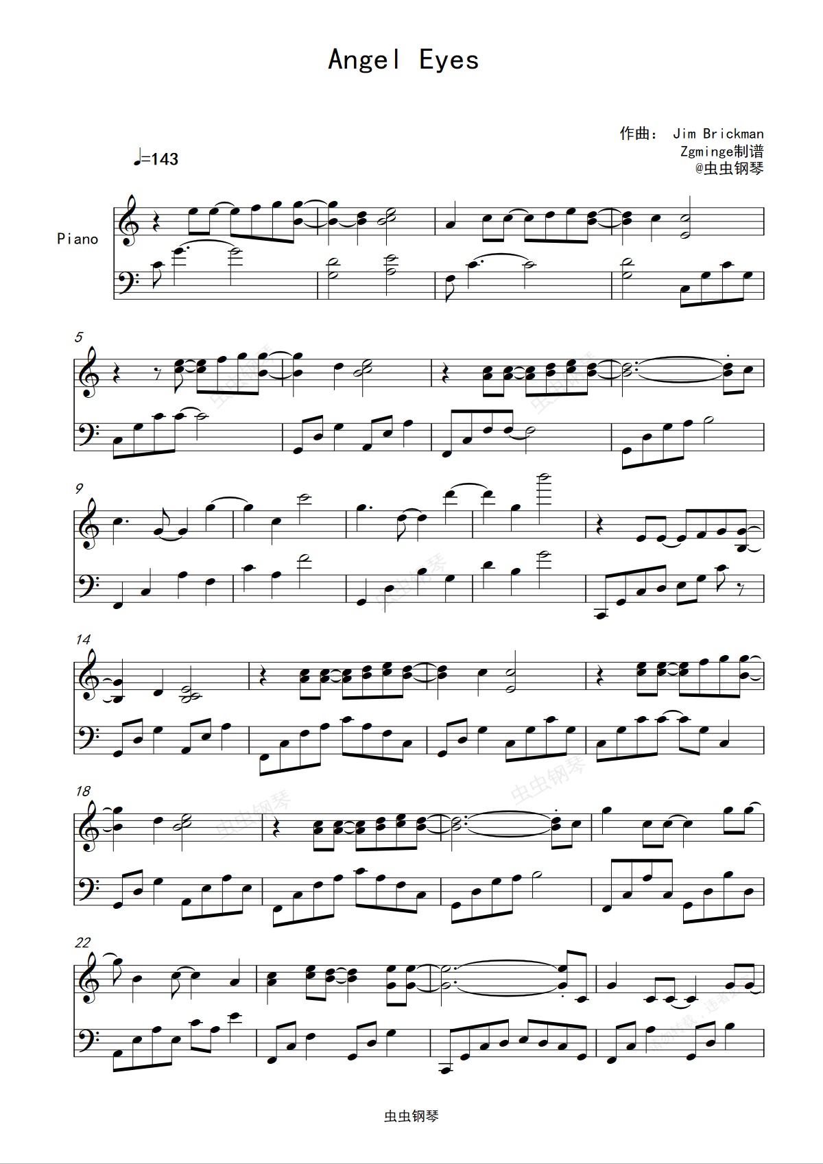 钢琴谱:Angel Eyes
