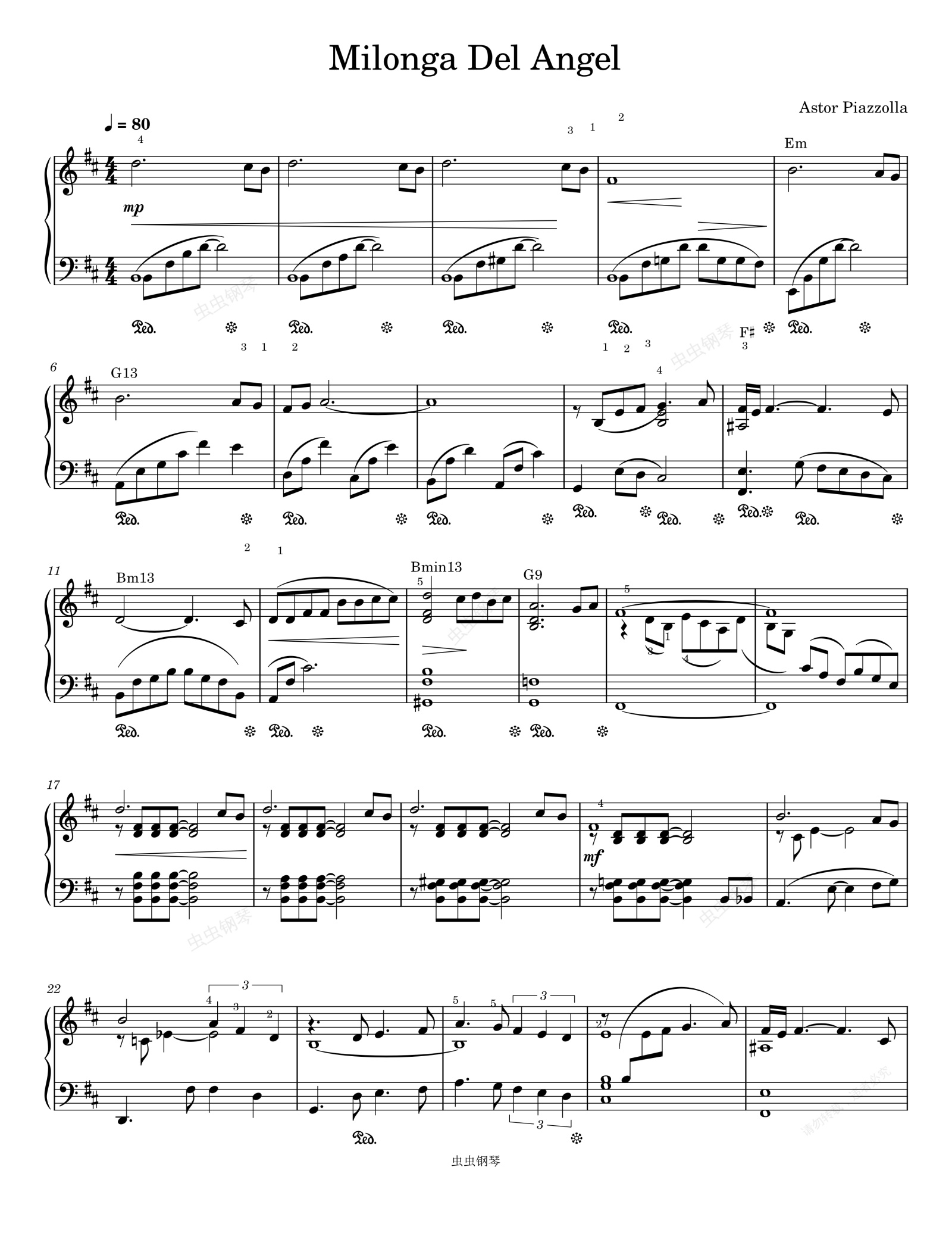 钢琴谱:Milonga Del Angel-Astor Piazzolla