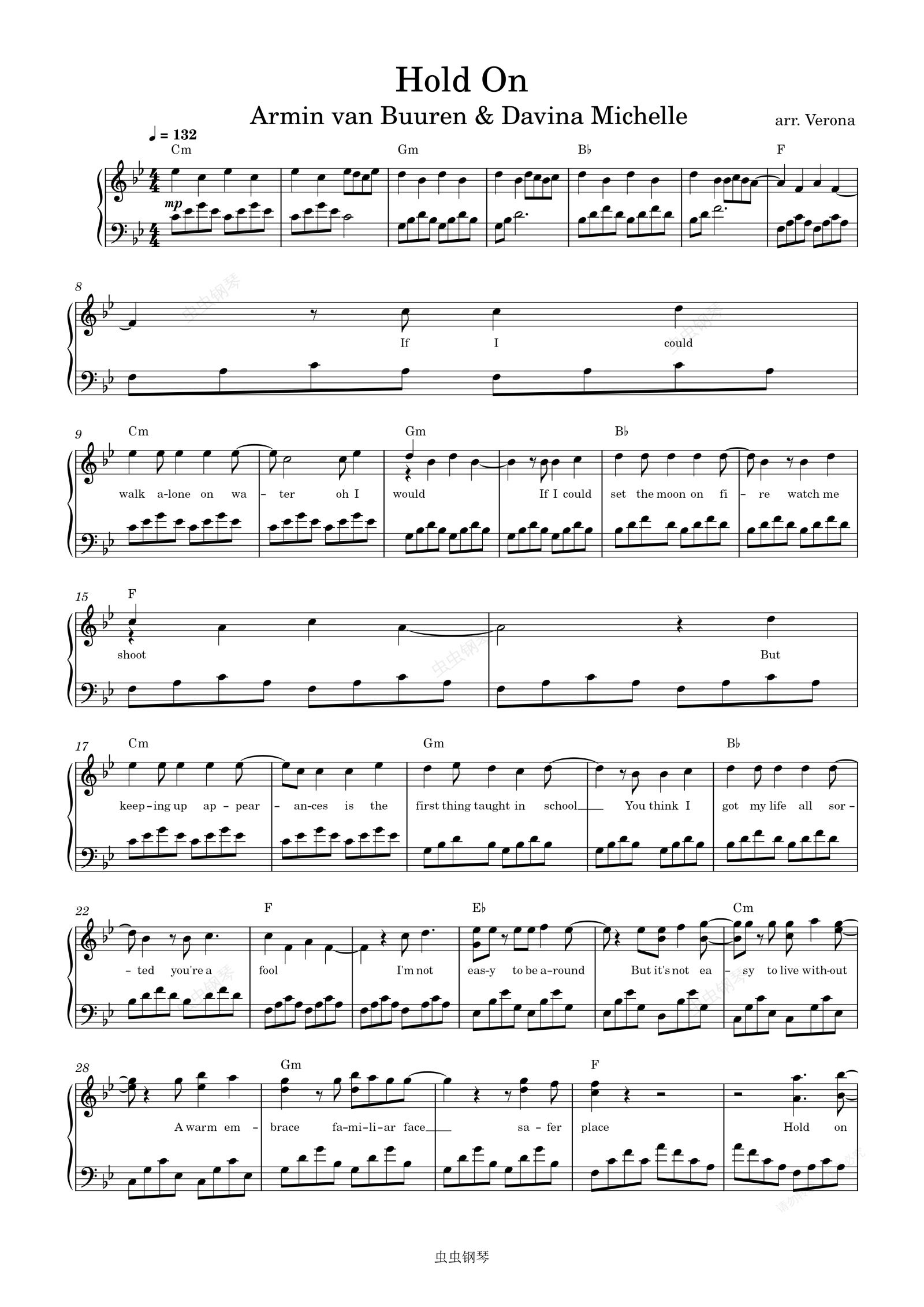 钢琴谱:Hold On-Armin van Buuren / Davina Michelle