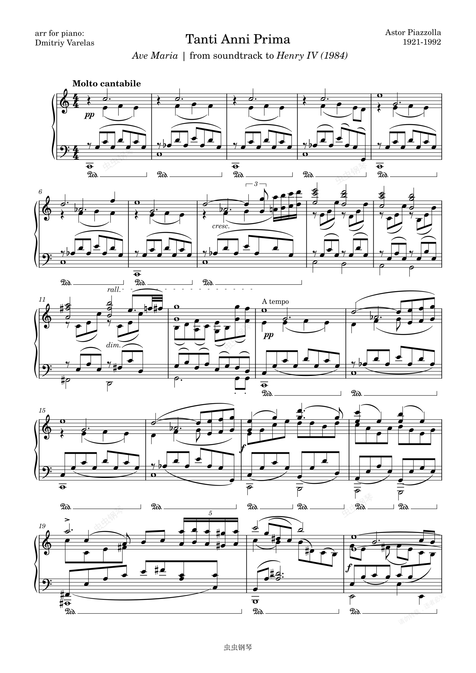 钢琴谱:Tanti Anni Prima-Astor Piazzolla