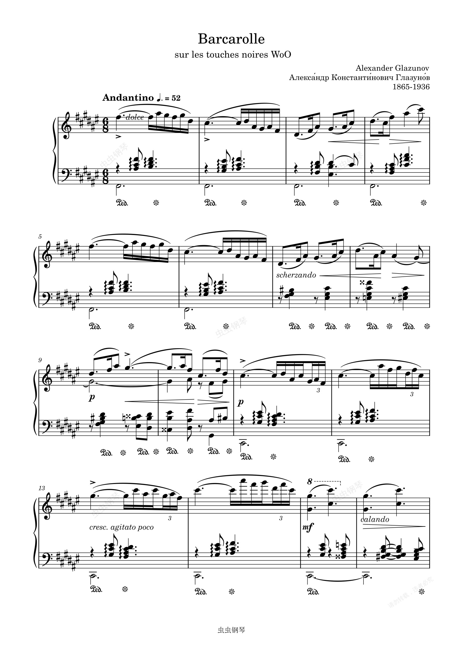 钢琴谱:Barcarolle -Alexander Glazunov