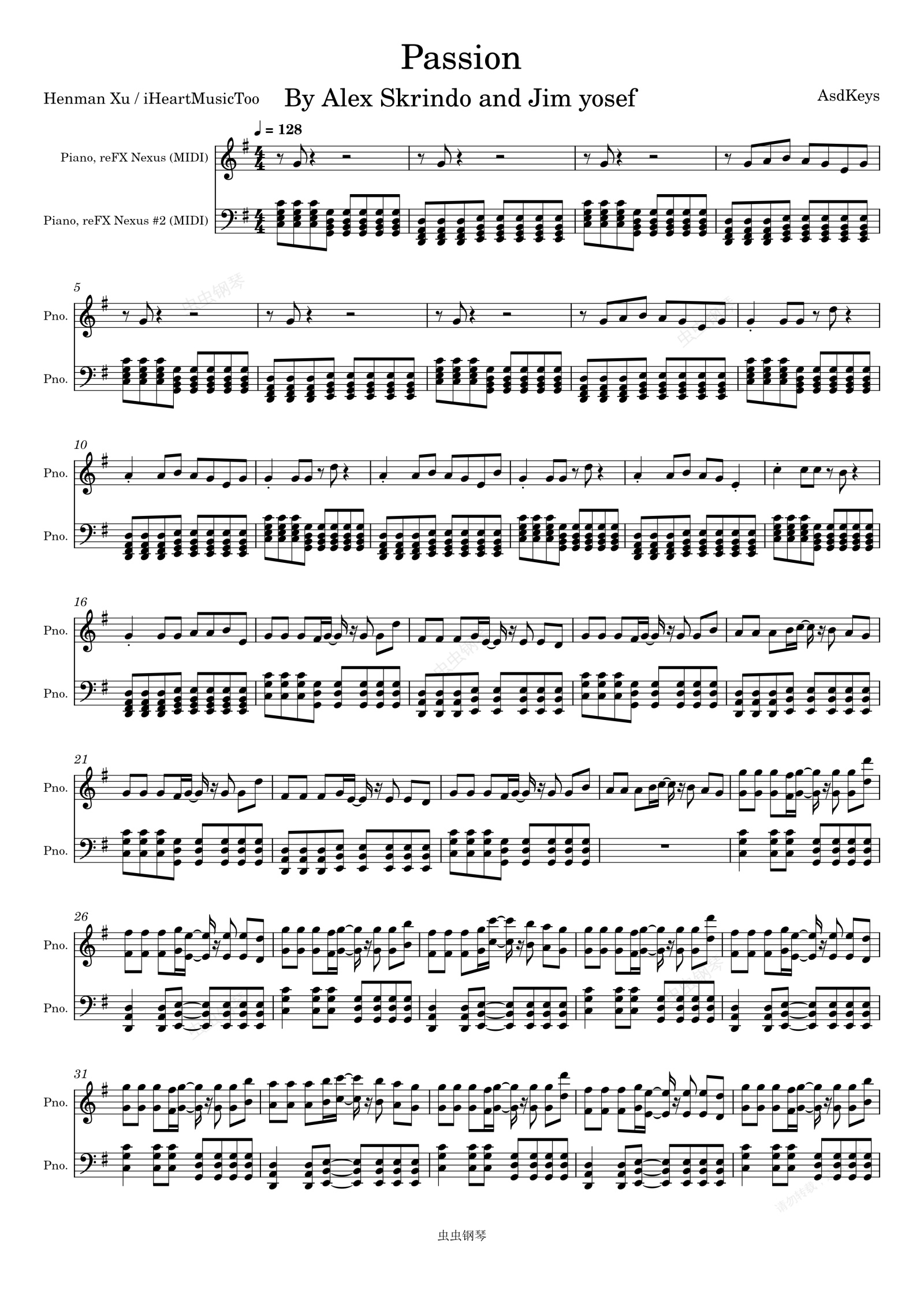 钢琴谱:Passion-Jim Yosef/Alex Skrindo