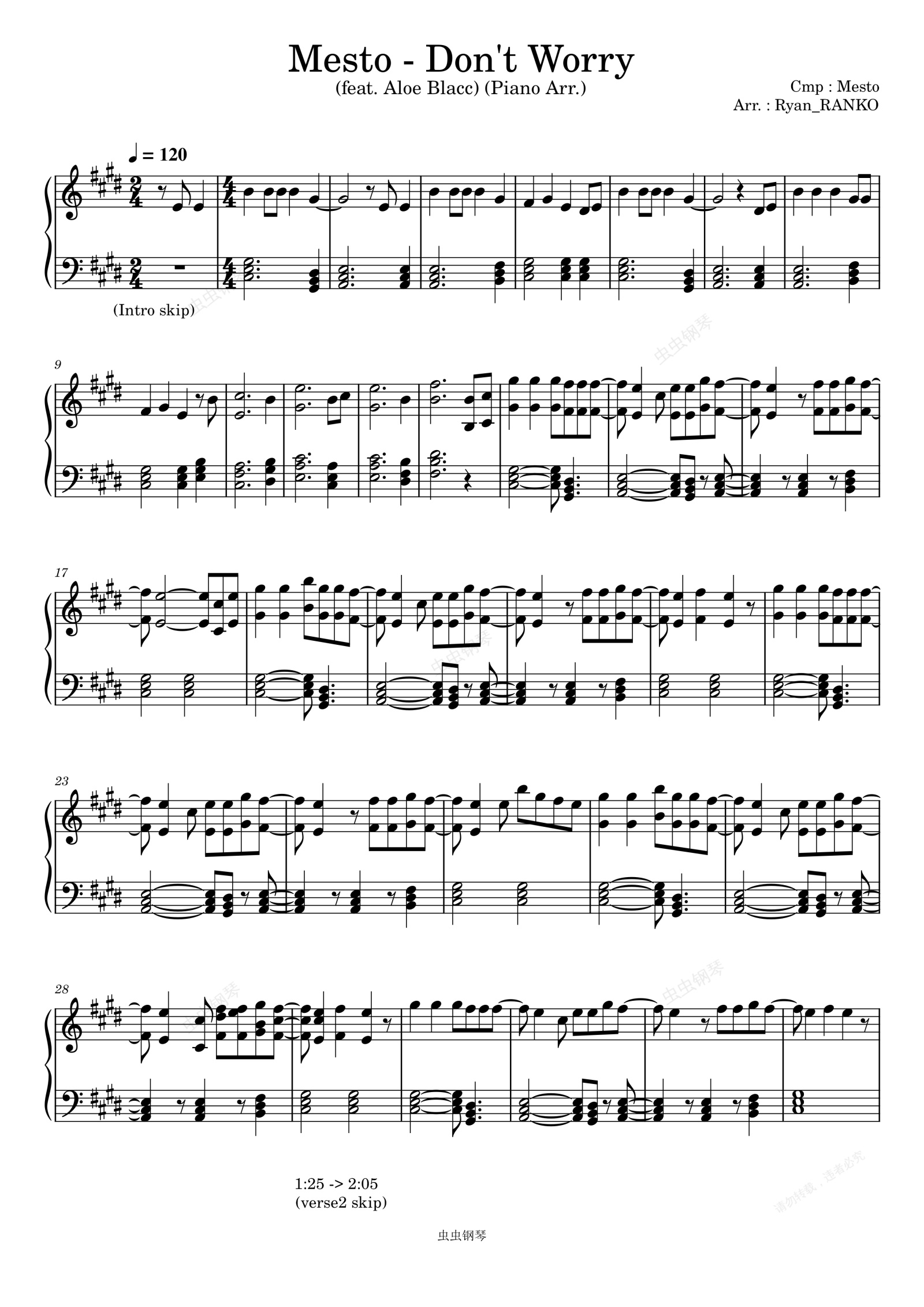 钢琴谱:Mesto - Don't Worry (feat. Aloe Blacc)
