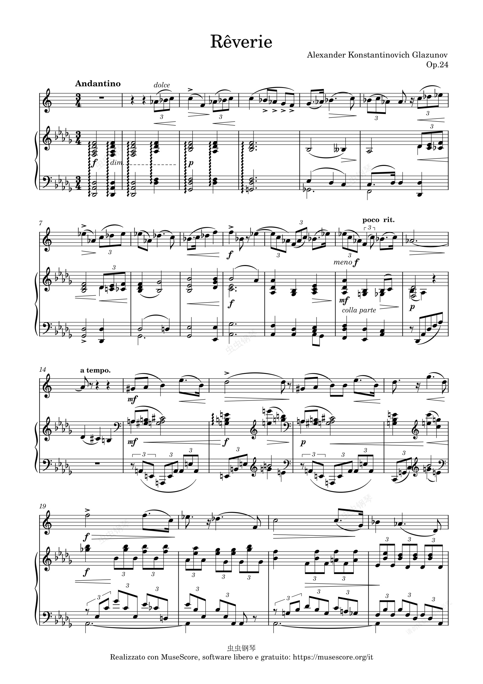 钢琴谱:Rverie - Alexander Konstantinovich Glazuno