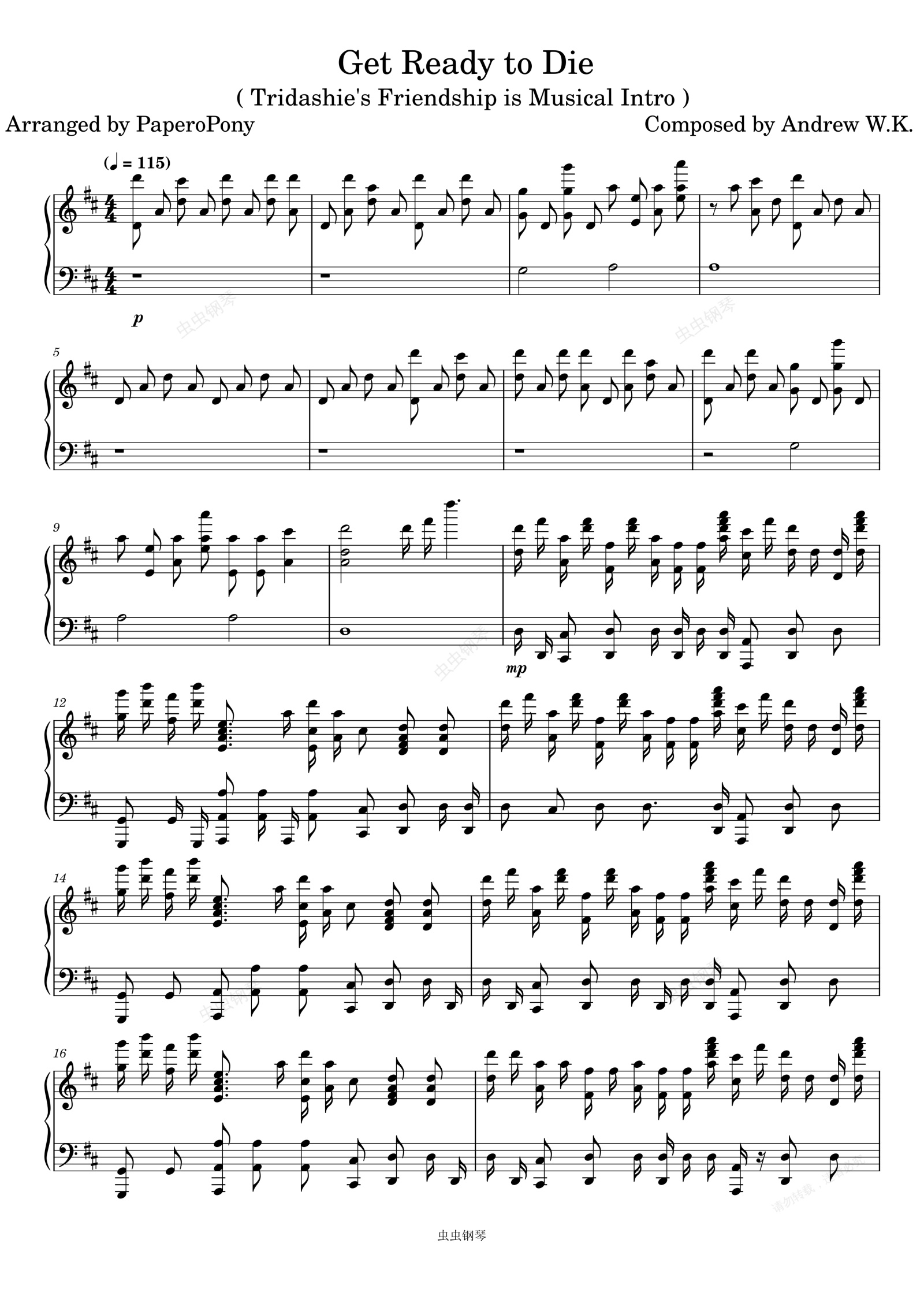钢琴谱:Get Ready to Die-Andrew W.K.