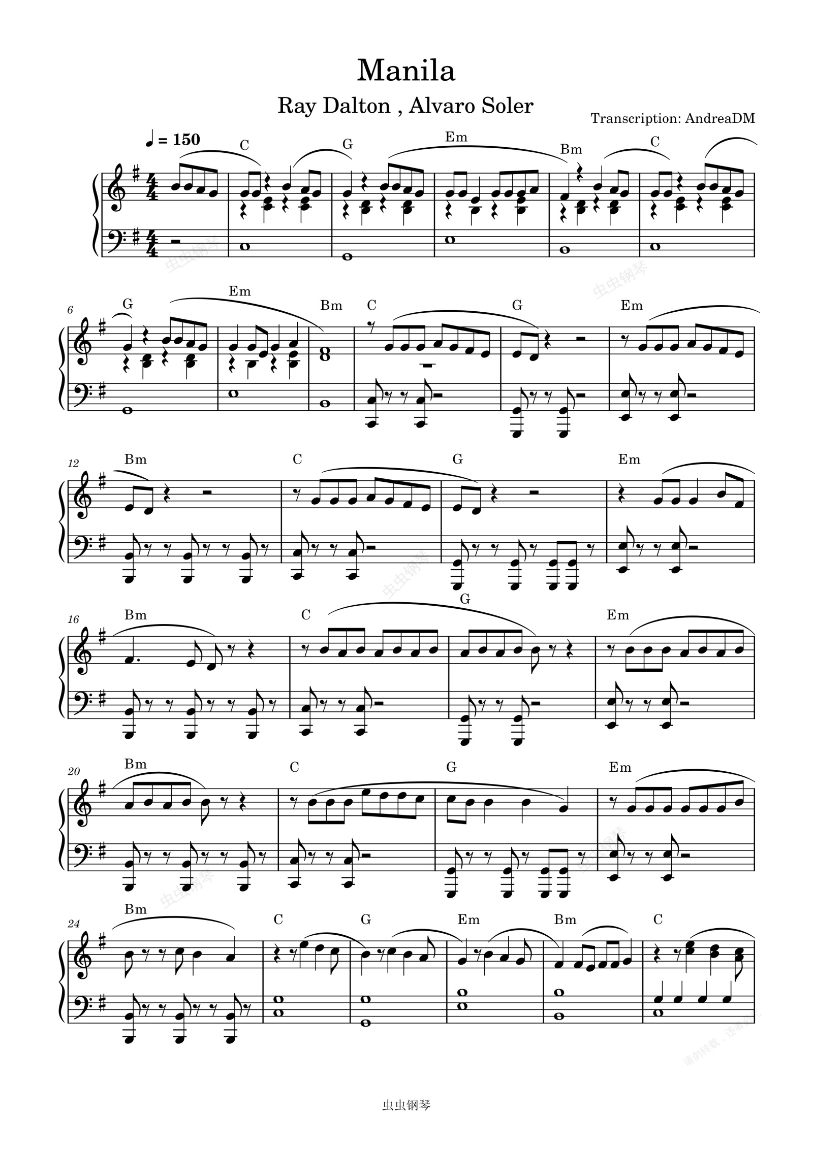钢琴谱:Manila-Ray Dalton/Álvaro Soler