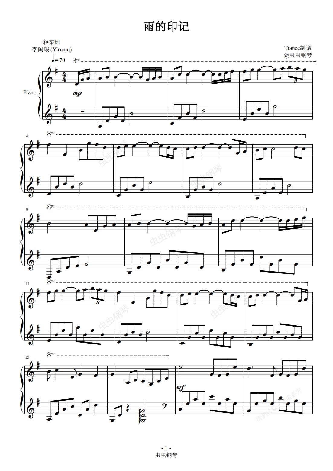 钢琴谱:《雨的印记》成人教学专用,拜厄难度