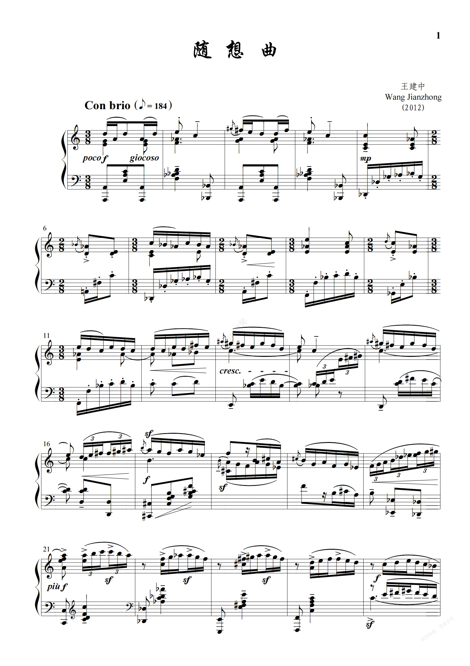 钢琴谱:古典计划 免费乐谱《随想曲》王建中
