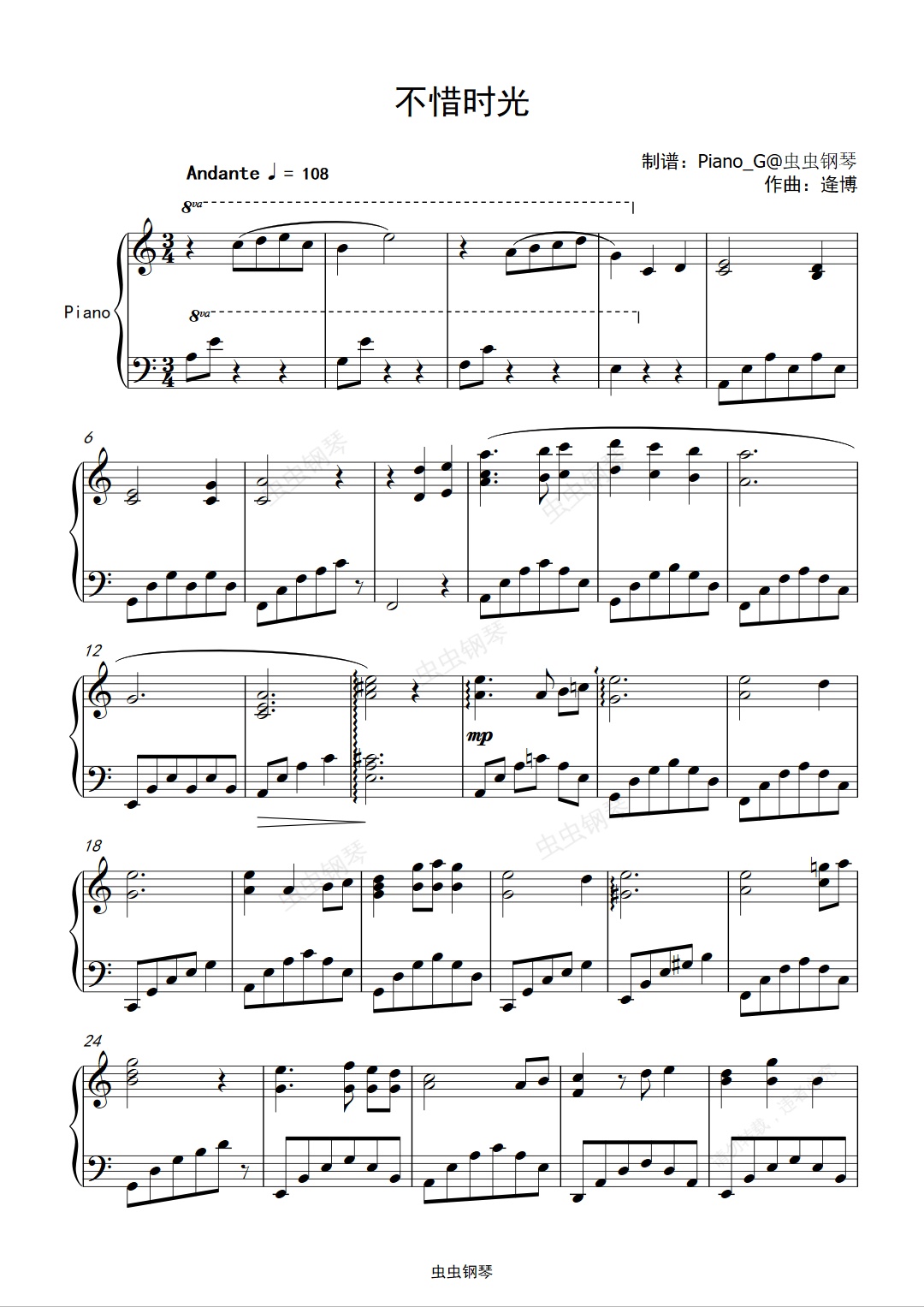 钢琴谱:不惜时光(梦华录主题曲)