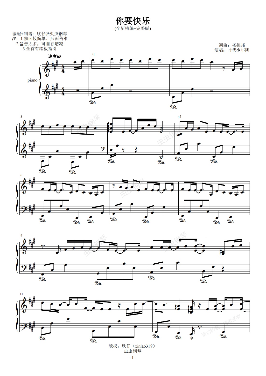 钢琴谱:时代少年团-A《你要快乐》 (全新精编+完整版)