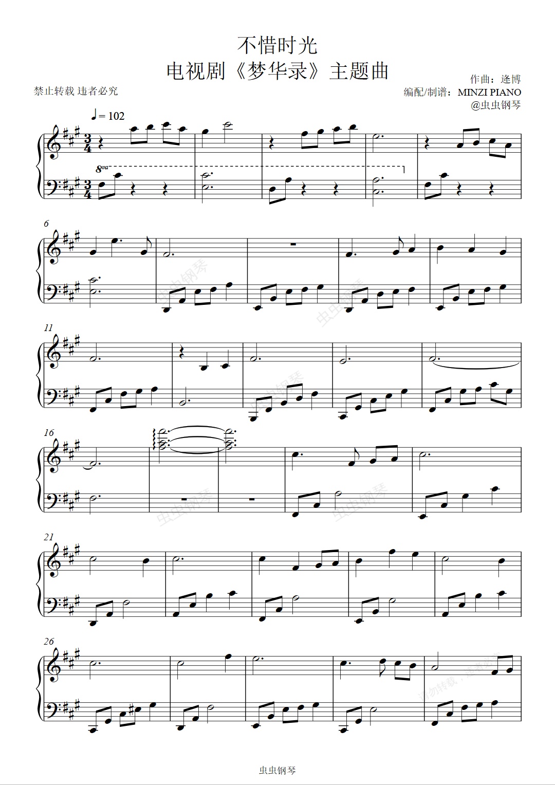 钢琴谱:原调 梦华录主题曲《不惜时光》张靓颖